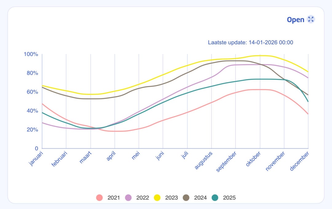 2. **Waarom daalt het de afgelopen weken zoveel harder dan andere jaren?**