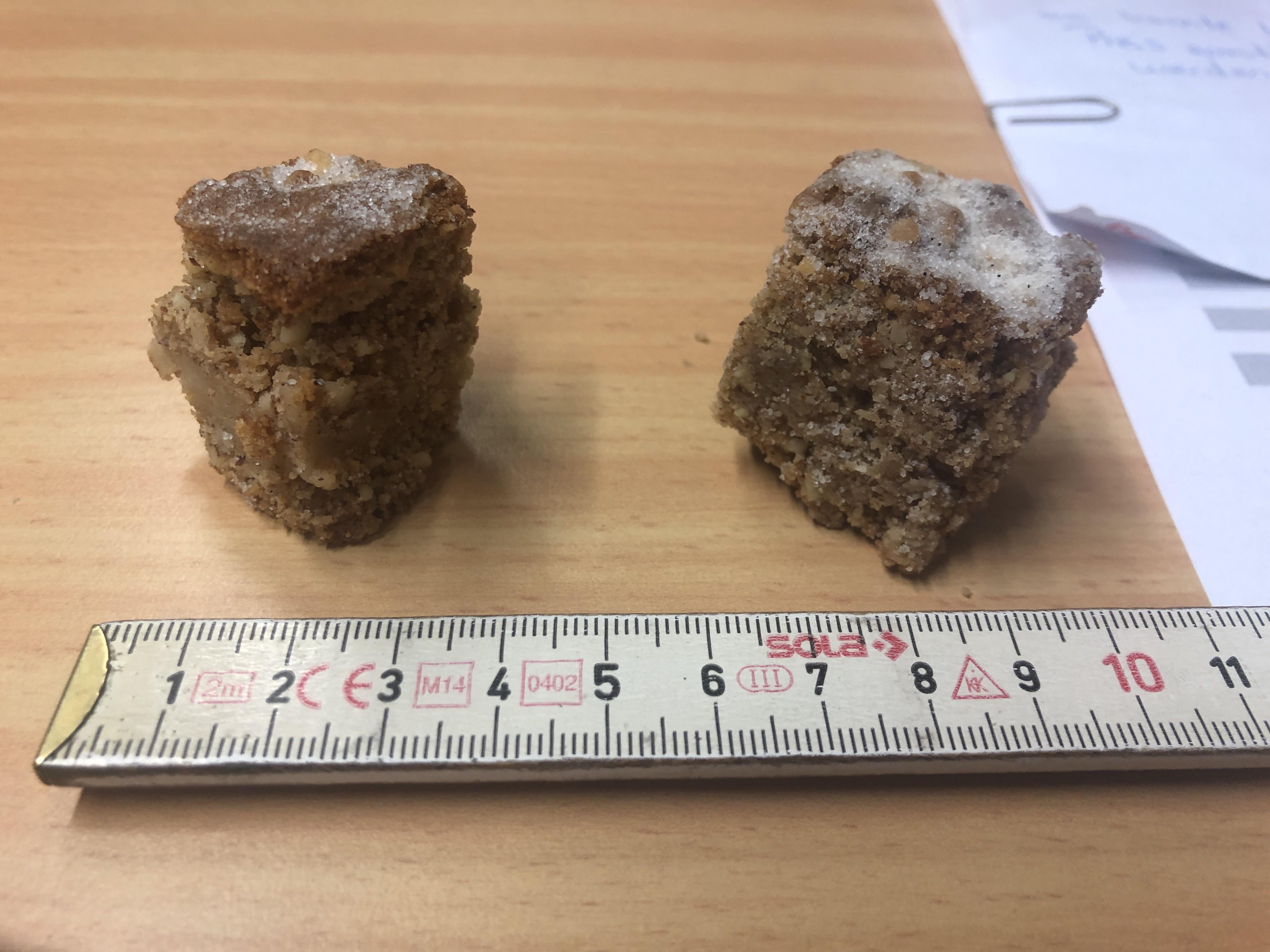 Und n Klecks Marzipan war auch drin. Oben drauf, das dürfte fein gemahlener raffinierter Zucker sein.