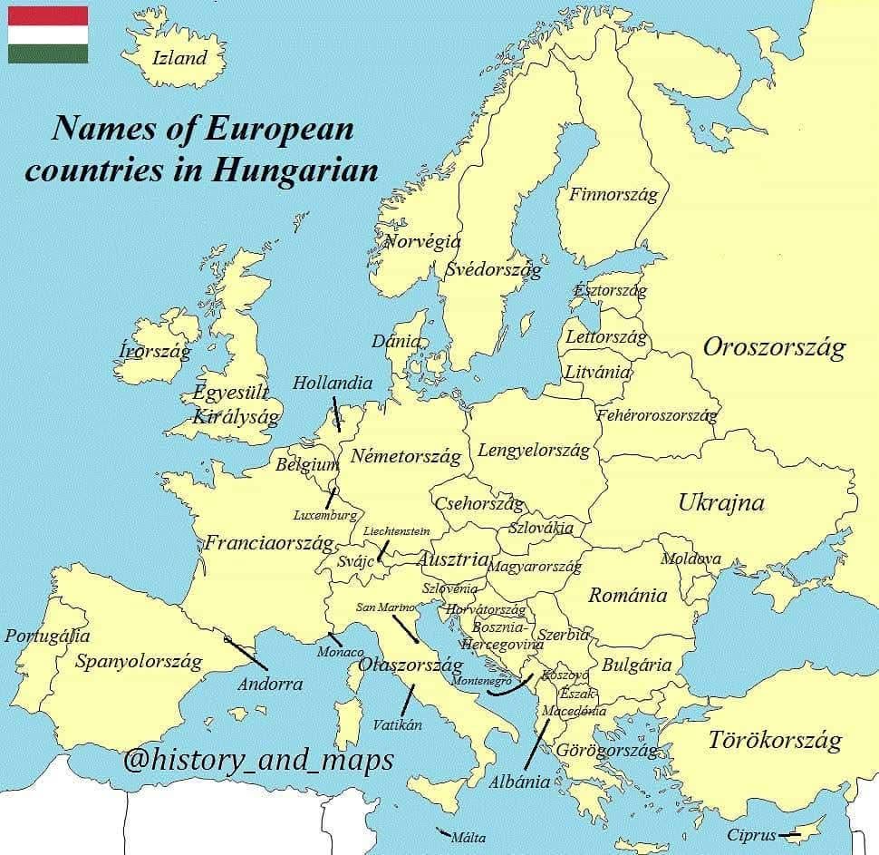 Interesting that “Finland” is not similar to “Suomi”, considering Hungarian and Finnish are somewhat related (iirc)