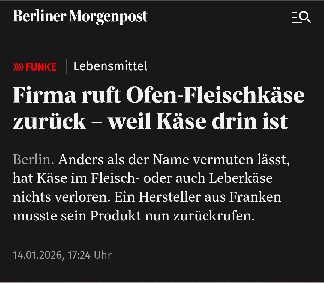 Also muss das Produkt jetzt Käse-Fleischkäse heißen?