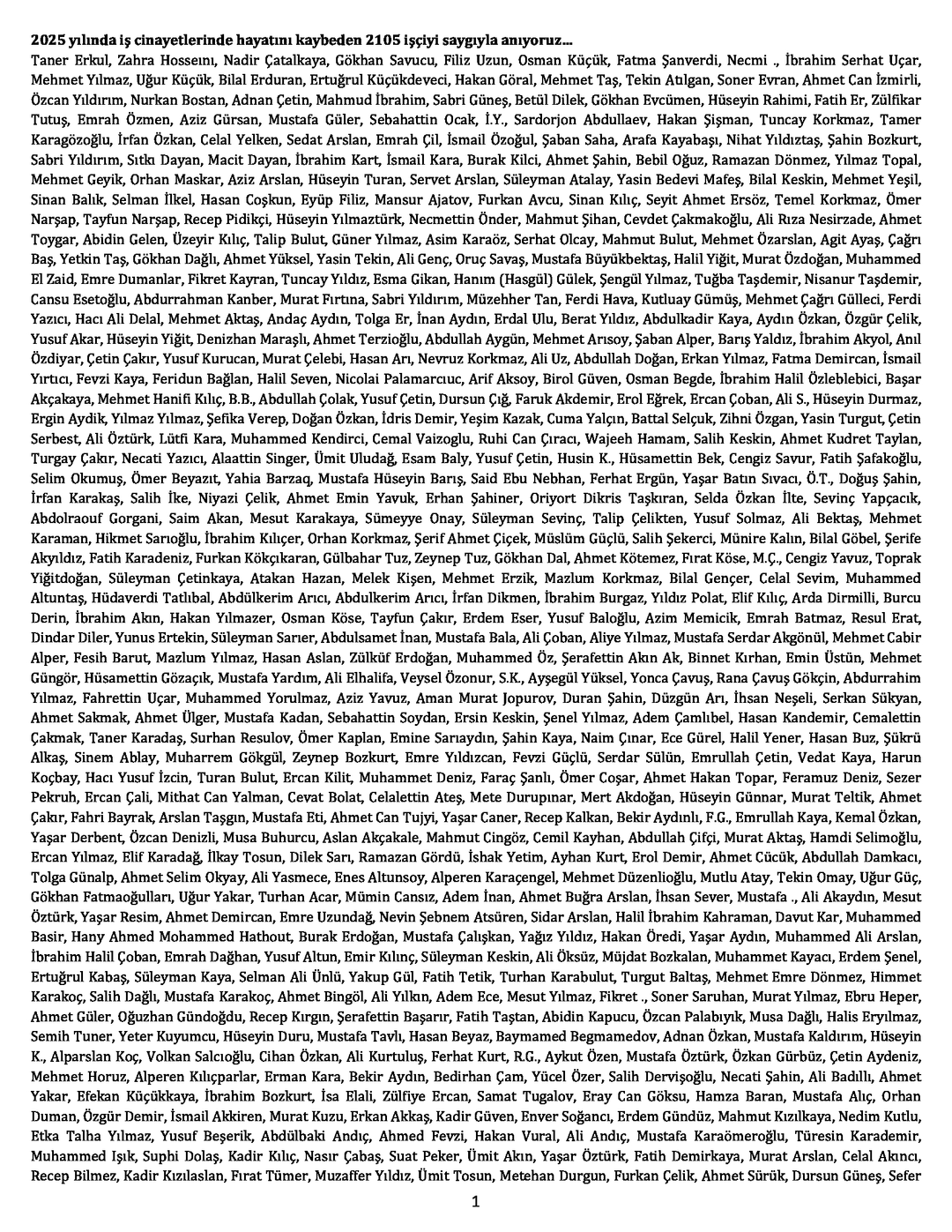 Namen von 2105 Arbeitern, die im Jahr 2025 ihr Leben verloren haben. Wir leben in einem Regime völliger Ausbeutung.