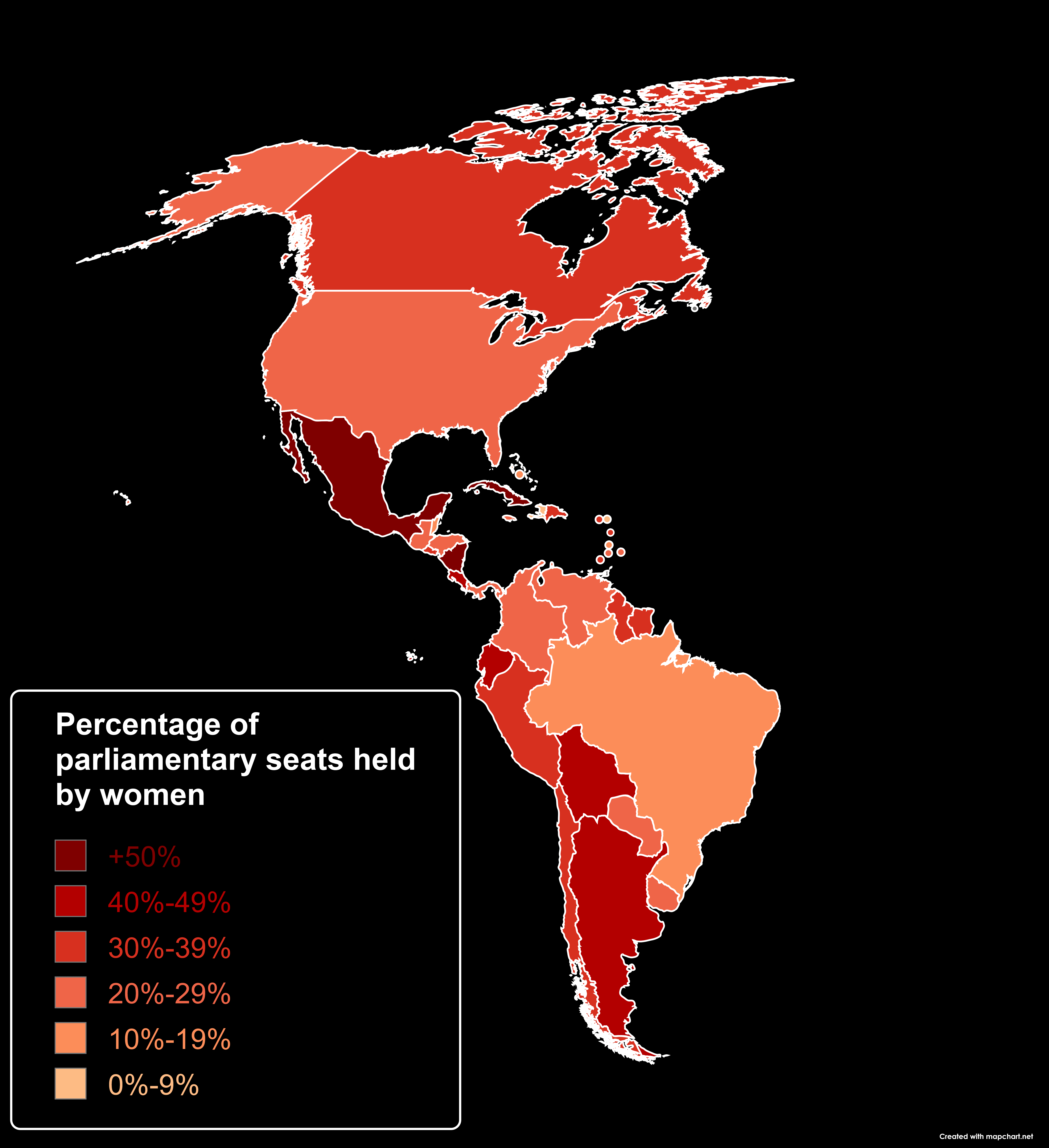 These maps would be more helpful if they indicated where there were quotas for elected female politicians and what that quota is. It would also help if this map wasnt just 50 shades of red.