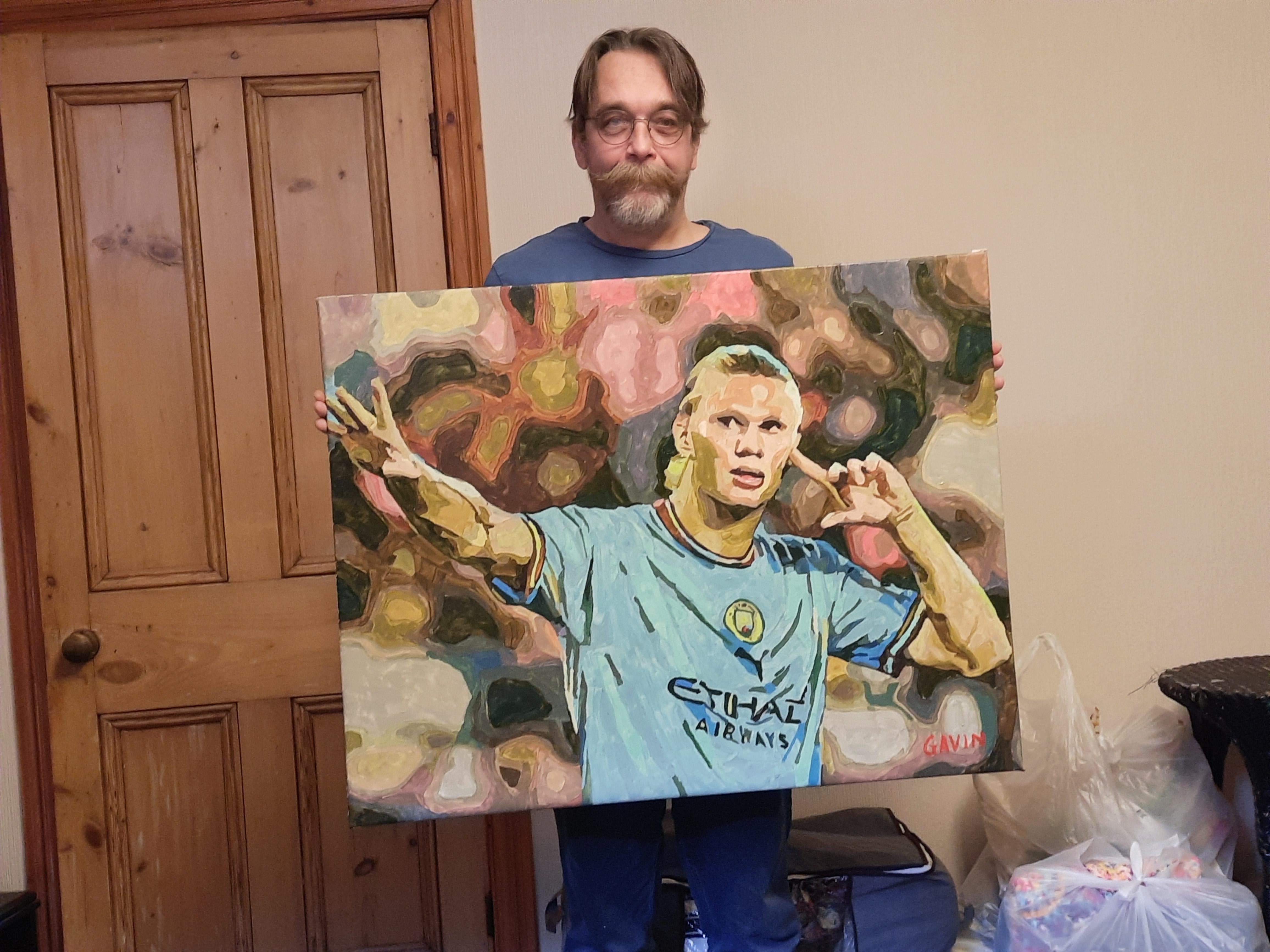 Jeg er ikke talentfull. Det er maling etter tall med mitt eget fargevalg. Jeg vil gjerne gi det til ham, og kanskje han kan gi det til faren sin.
