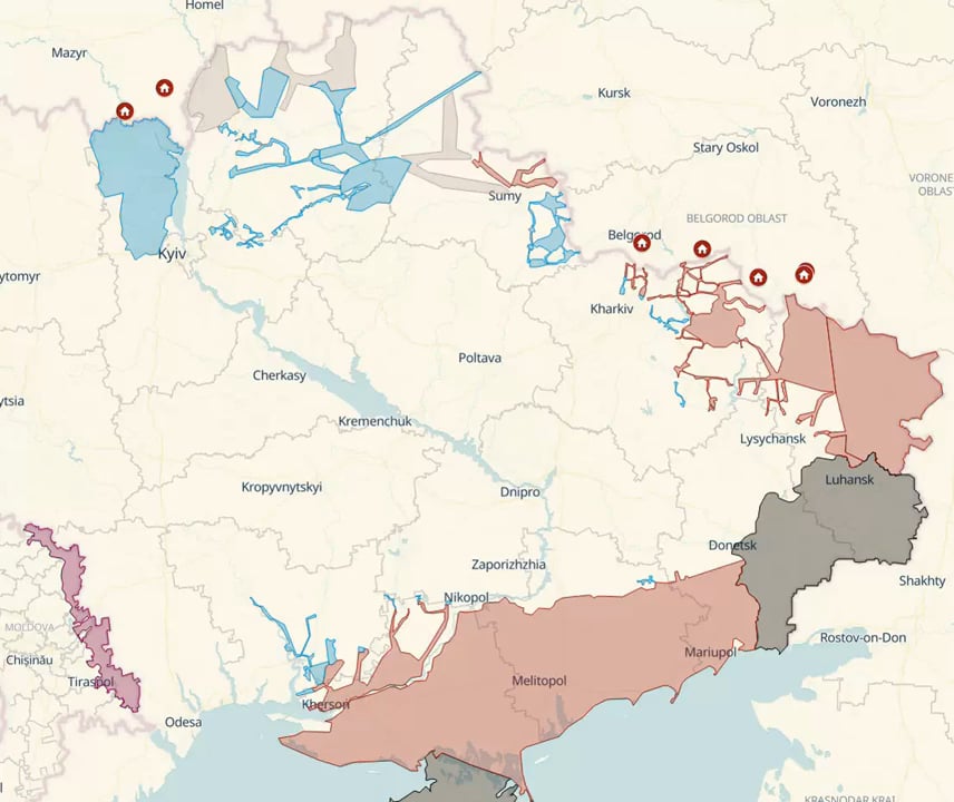 Blue = Ukraine liberated/captured zone in last 2 weeks of the map