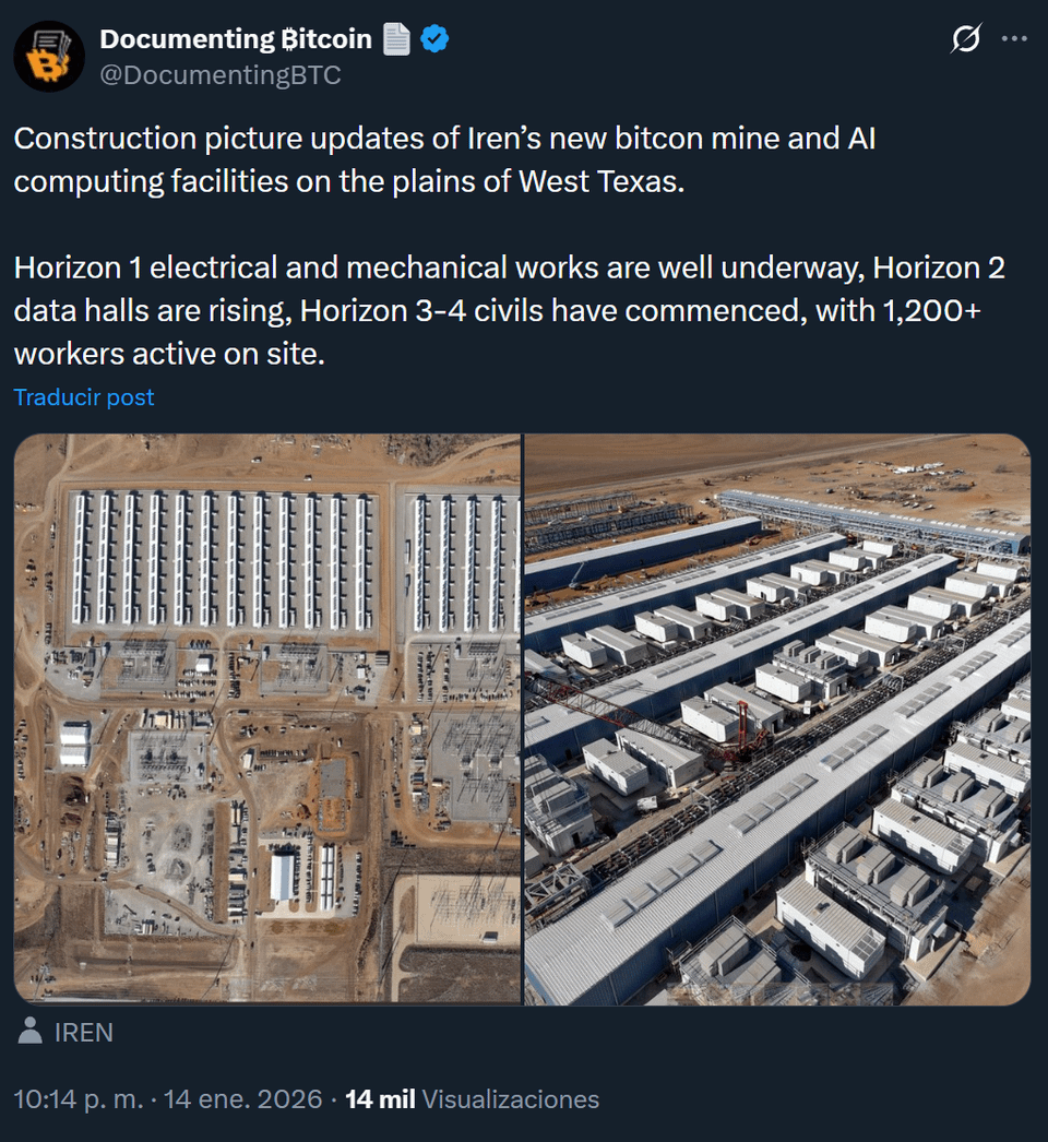 Aktualisierungen der Baubilder von Irens neuer Bitcoin-Mine und KI-Rechneranlagen in den Ebenen von West-Texas.
