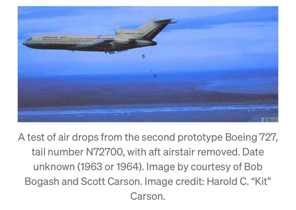 The 727 actually had rear air stairs because of the fact that many small airfields didn’t have air stairs back in the 60s. The 737-100/200 also had built in air stairs on the L1 door and optional air stairs attached to the L2 door. Also the DC-9 had them, and the MD-80/90 also had them. This plane wasn’t commissioned by the CIA or Mossad, it was commissioned by United Airlines and Eastern Airlines (the 1926-1991 eastern airlines, not the new one that runs a MIA-SDQ flight once a month and does ICE flights the rest of the time)