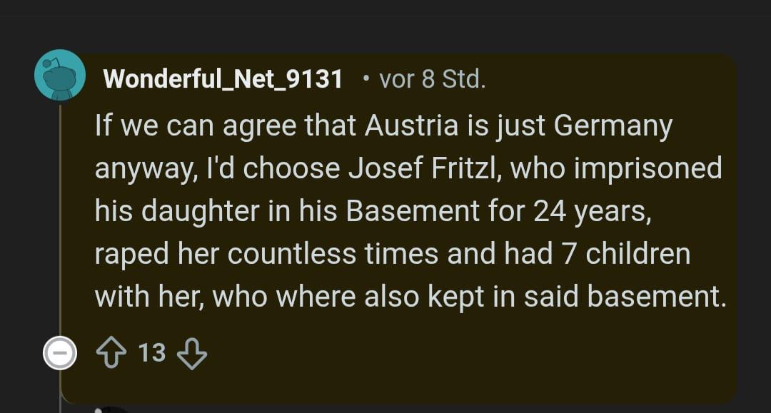 Also ich wär auch dafür, dass wir den Fritzl den deutschen unterschrieben. Hat schon bei Hitler super funktioniert.