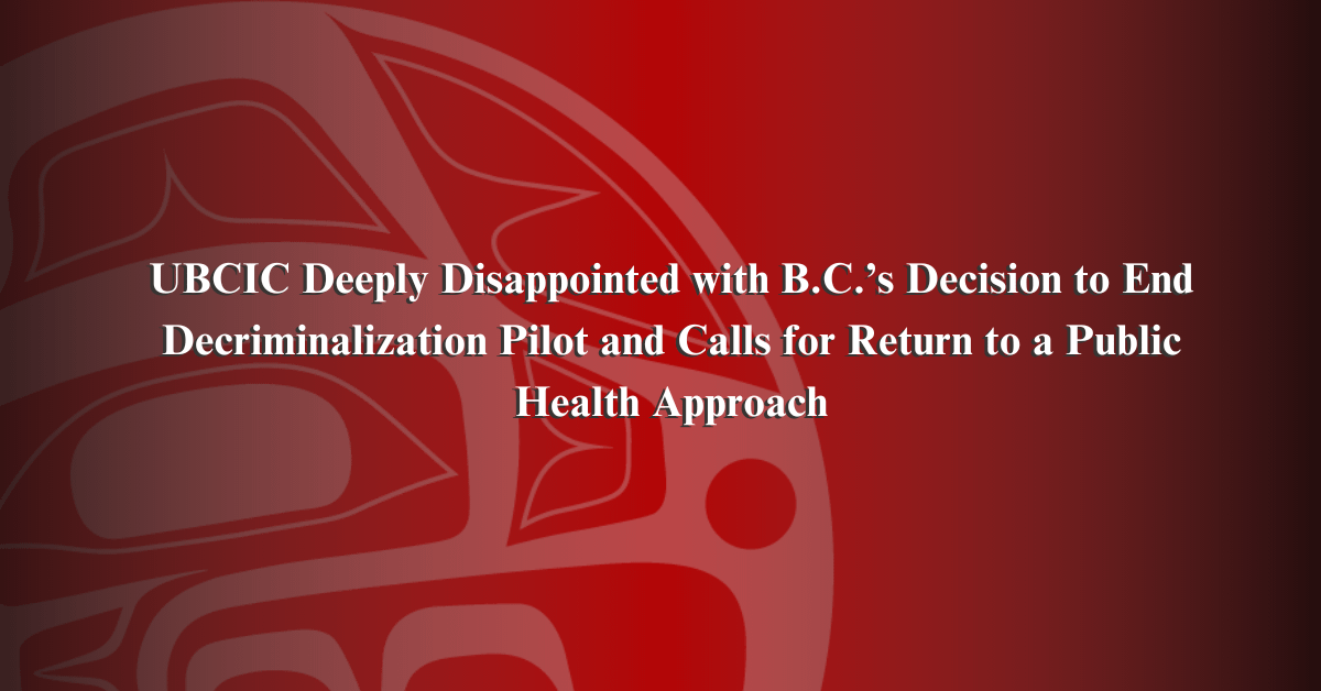 UBCIC ist zutiefst enttäuscht über die Entscheidung von British Columbia, das Pilotprojekt zur Entkriminalisierung zu beenden, und fordert eine Rückkehr zu einem Ansatz im Bereich der öffentlichen Gesundheit