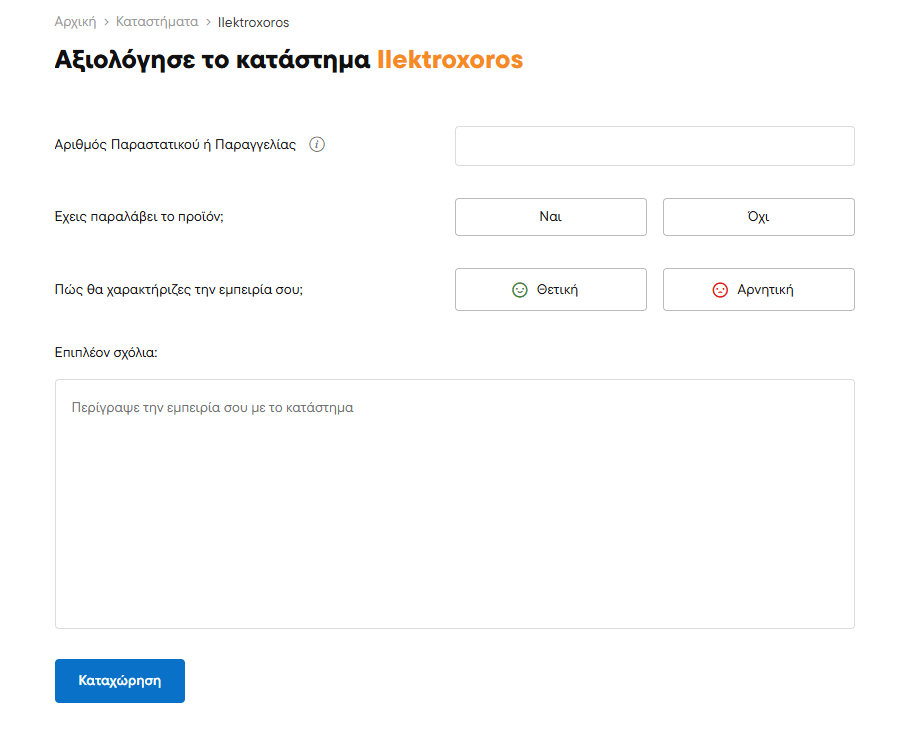 TLDR: Skroutz hat es sehr schwierig gemacht, eine Bewertung abzugeben, insbesondere bei negativen Erfahrungen. Dadurch ist es sogar buchstäblich unmöglich geworden, eine Bewertung in einem Geschäft abzugeben, das die Bestellung noch nicht abgeschlossen hat.