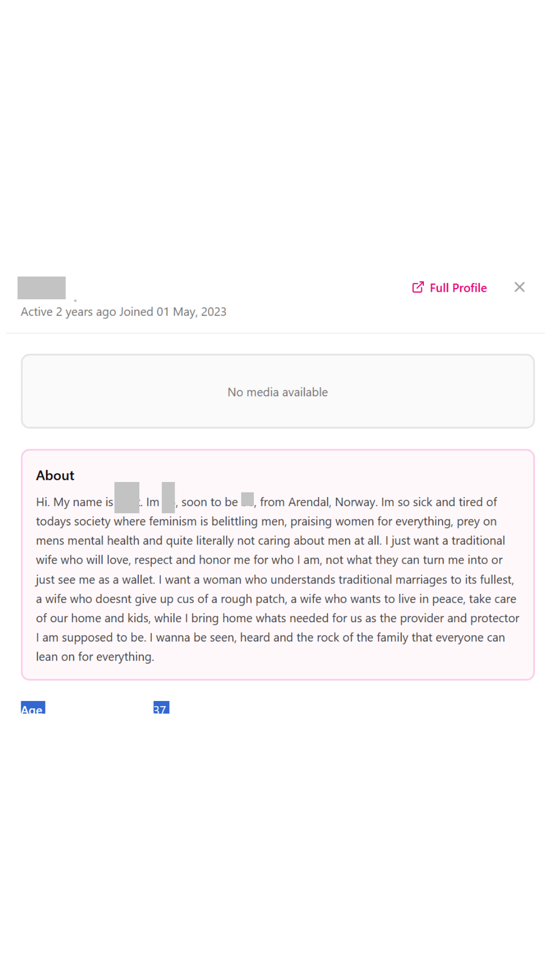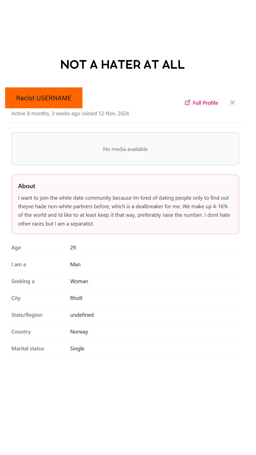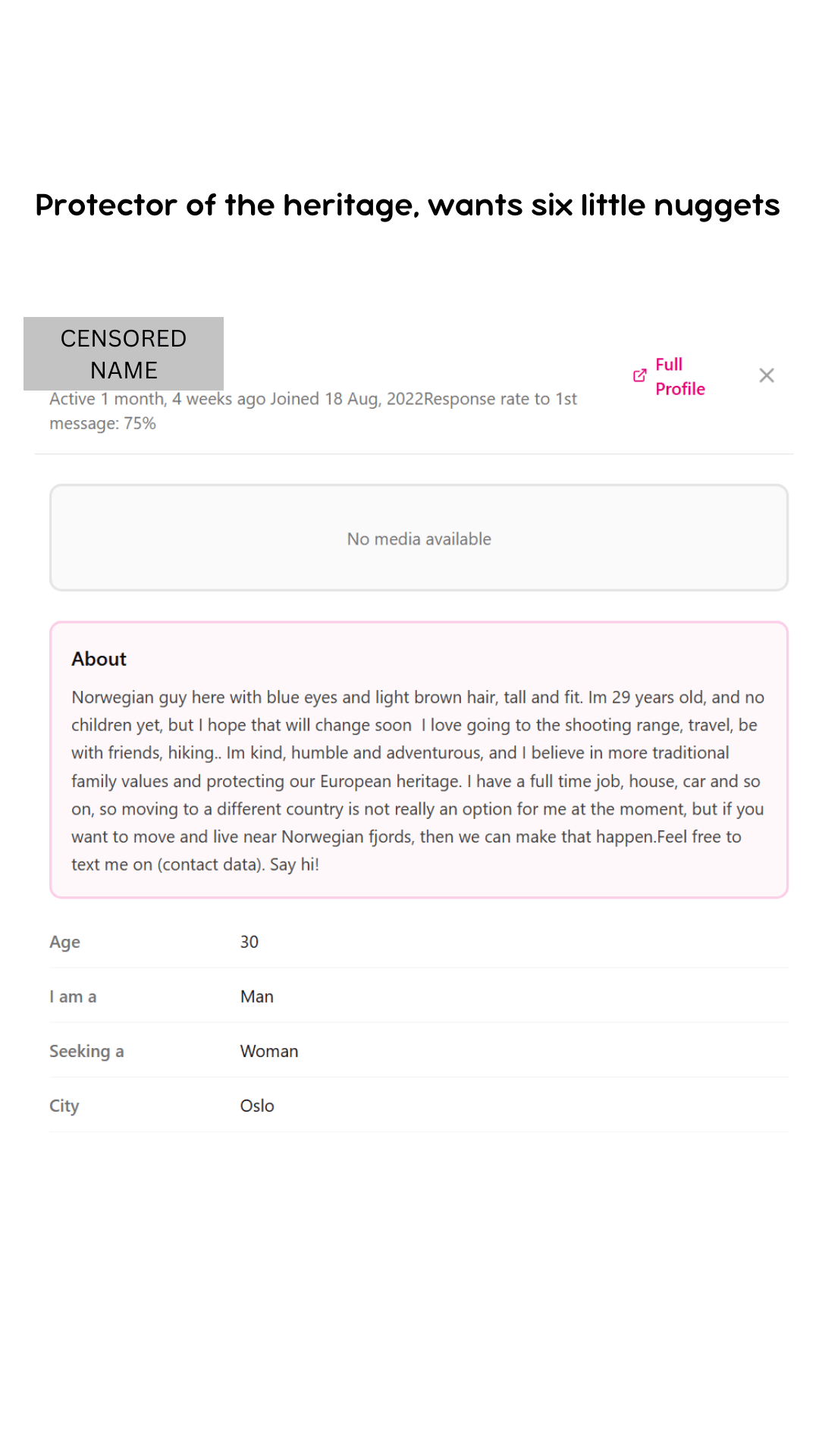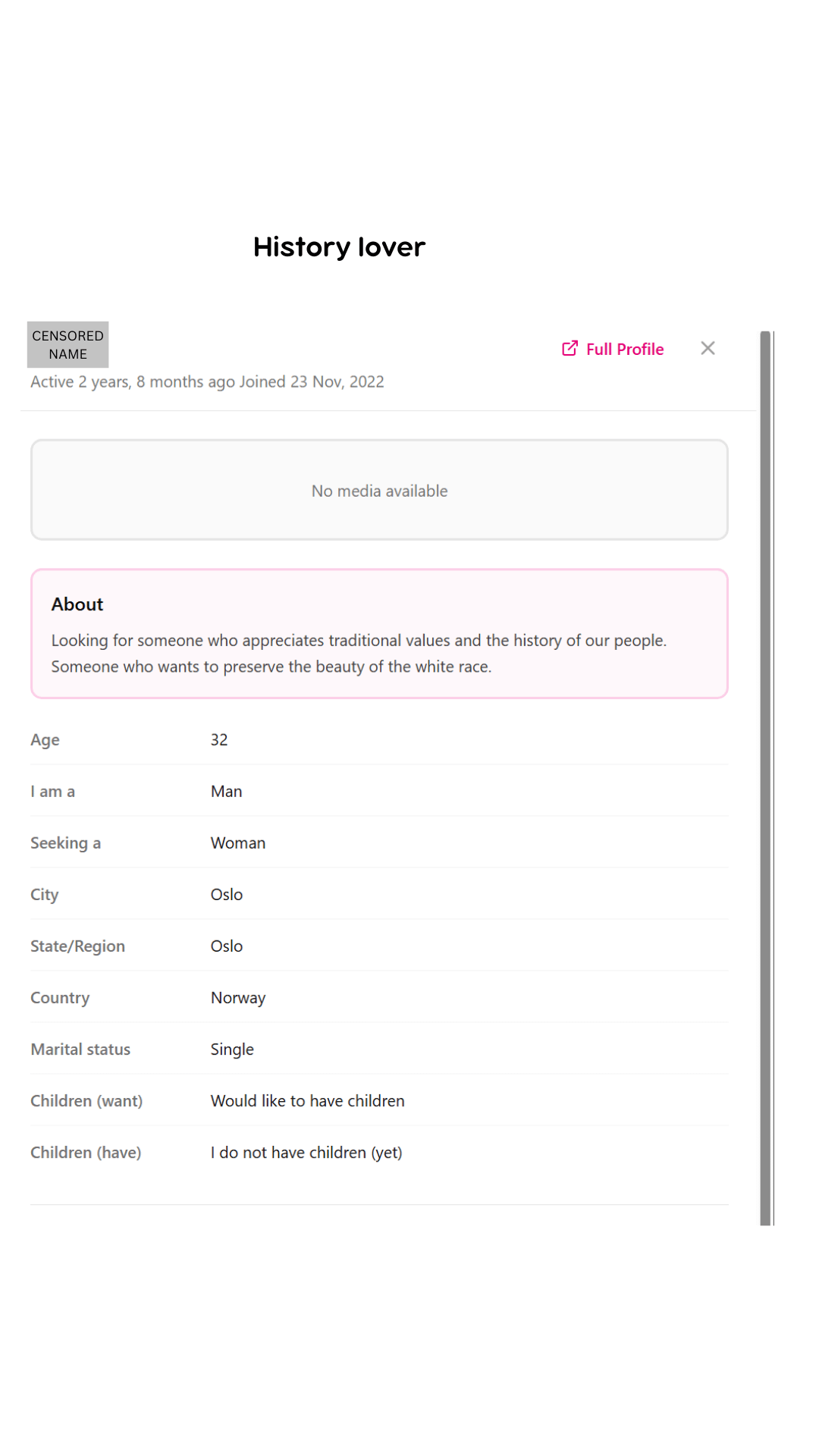 Nur einige norwegische Profile von der White Supremacist-Dating-Site „WhiteNet“ aus der Veröffentlichung von Marta Root
