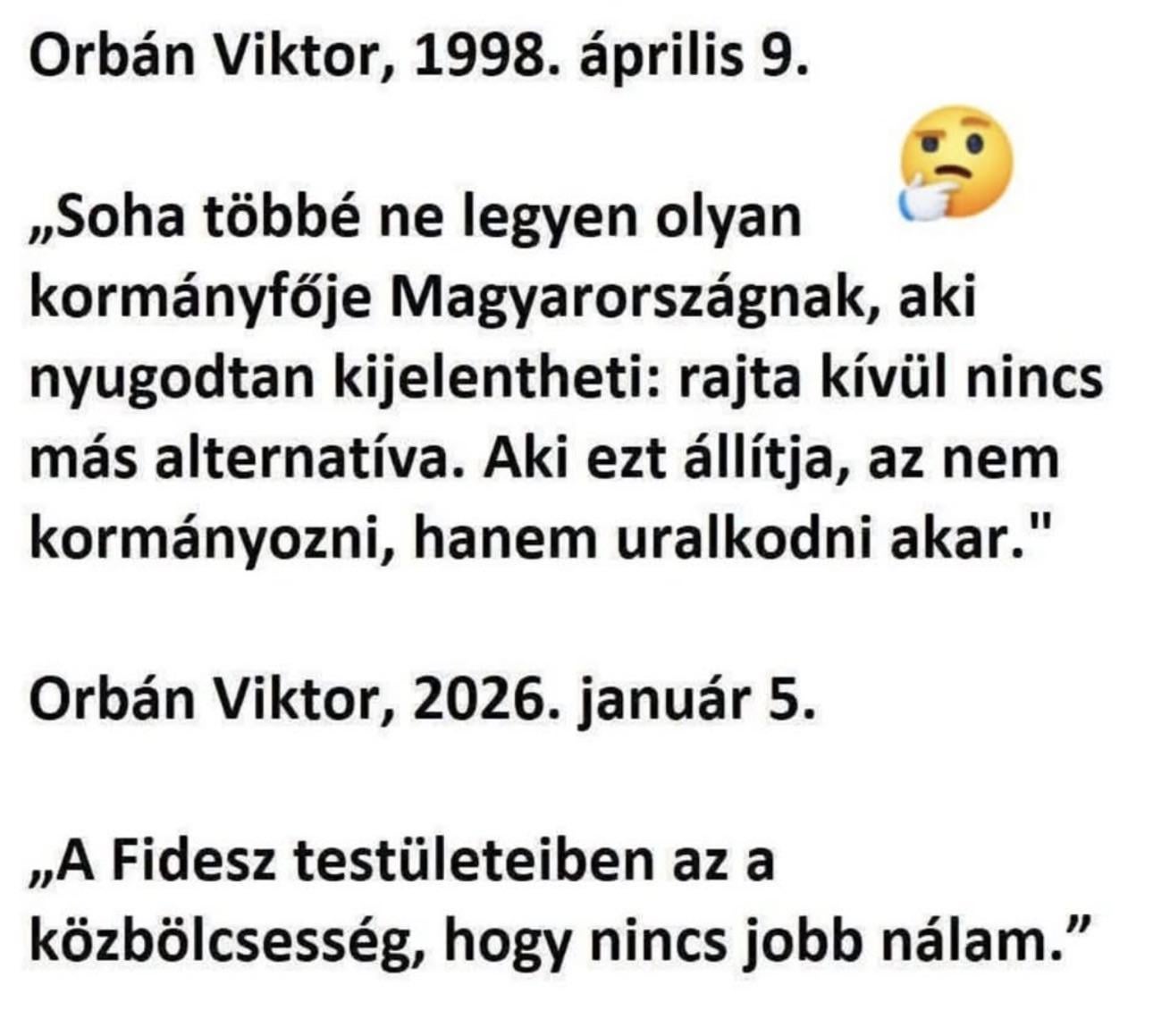 Tulajdonképp az első kijelentése is csak azt az egy célt szolgálta, hogy uralkodhasson. Nincs két Orbán Viktor, ahogy Fidesz sem.