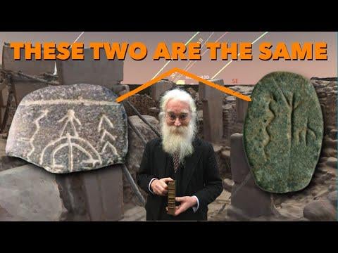 Dr. Irving Finkel schlug kürzlich im Lex Fridman-Podcast vor, dass ein bestimmtes Piktogramm aus grünem Stein am Göbekli Tepe eine Form des Schreibens sei. In diesem Video sehen Sie, wie nah seine Instinkte an der Wahrheit sind, indem er wie üblich zwei Steine vergleicht, anstatt nur über den einen zu sprechen. Einer stammt aus Gobekli Tepe und der andere aus Jerf el-Ahmar, in der Nähe, beide etwa um 9000 v. Chr. Die beiden Steine zeigen die gleichen Ideen. Wenn es sich also um einen Namen handelte, wie um ein Siegel für das offizielle Tas Tepeler-Geschäft, war es dasselbe "Name".