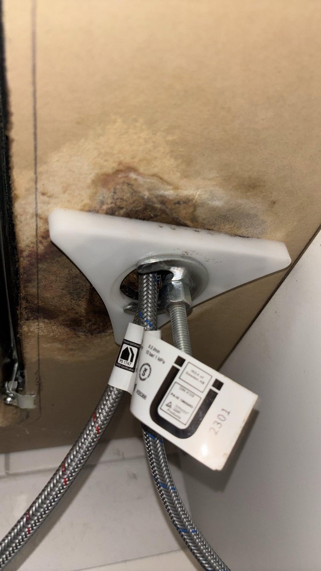 Da der Vermieter vor drei Jahren eine neue Küche eingebaut hatte, wurde eine Firma mit dem Einbau beauftragt. Die Küche ist von IKEA. Nach ein paar Monaten schickte ich dem Vermieter eine E-Mail wegen der mangelhaften Verarbeitung, etwa der schlechten Isolierung. Der Vermieter hat nichts unternommen, ich habe mündlich mit Hausmeister gesprochen und er hat hier und da selbst ein wenig Silikon aufgetragen, und ich dachte, es sei irgendwie zu bewältigen. Es sieht so aus, als hätte es eine kleine Undichtigkeit gegeben