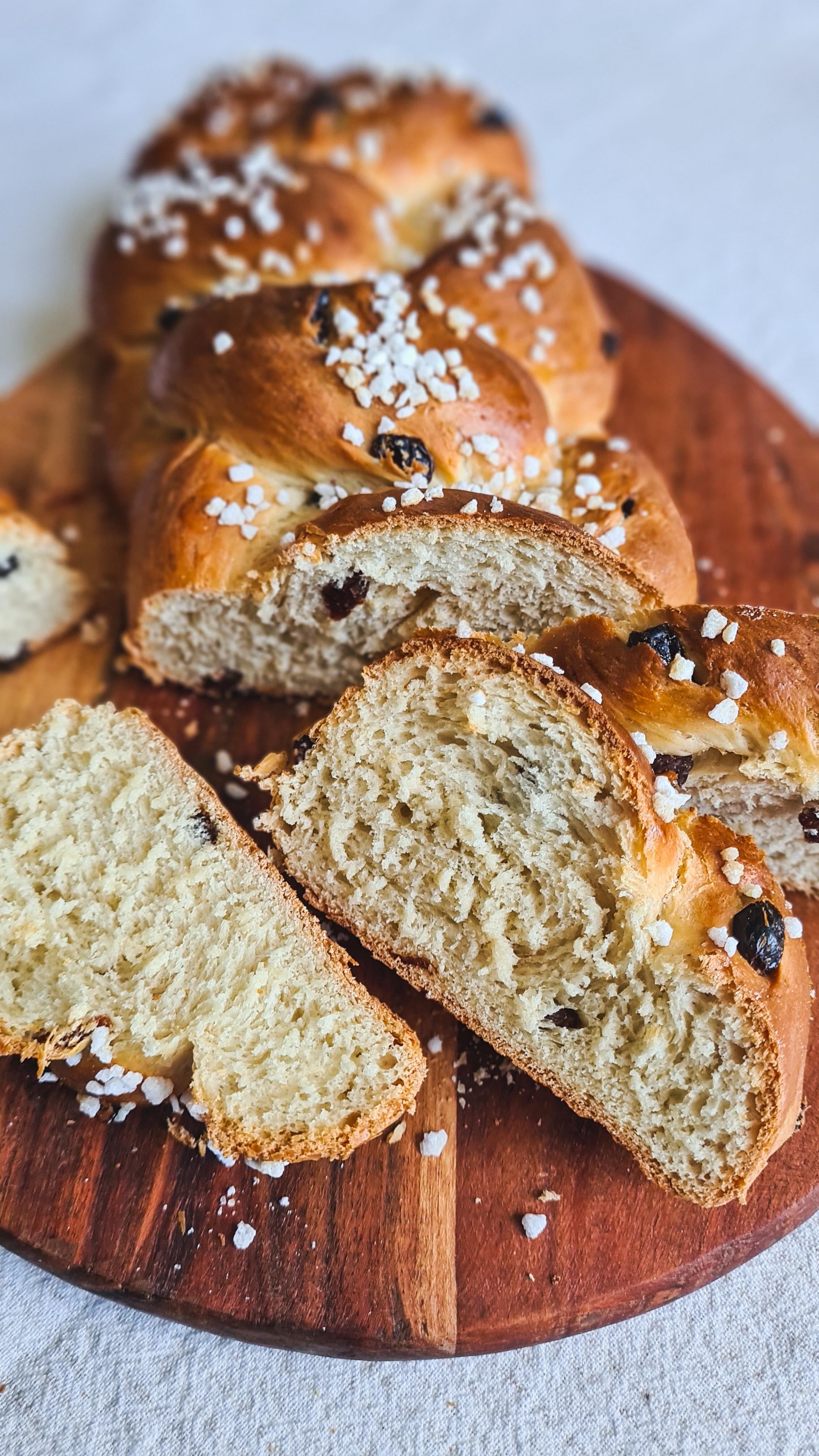 Vor dem Backen nochmals zugedeckt eine Stunde gehen lassen, mit zimmerwarmer Sojamilch einpinseln, Hagelzucker drauf verteilen.