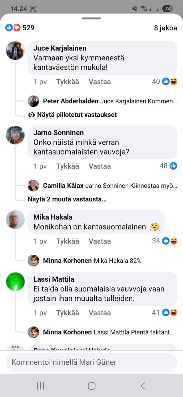 Der Kommentarbereich in dieser Zeitung ist erschreckend beängstigend. Sie sagten wörtlich, dass nur finnische Babys wertvoll seien und ausländische Babys… 🙁