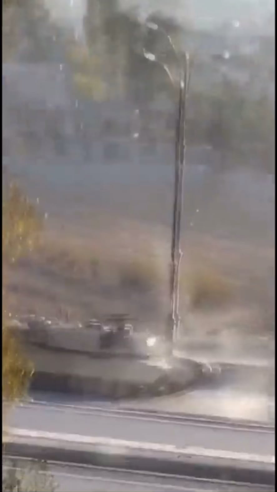 Where’s the smoke around the turret coming from when the tank starts moving backwards, shortly before the 2nd explosion?