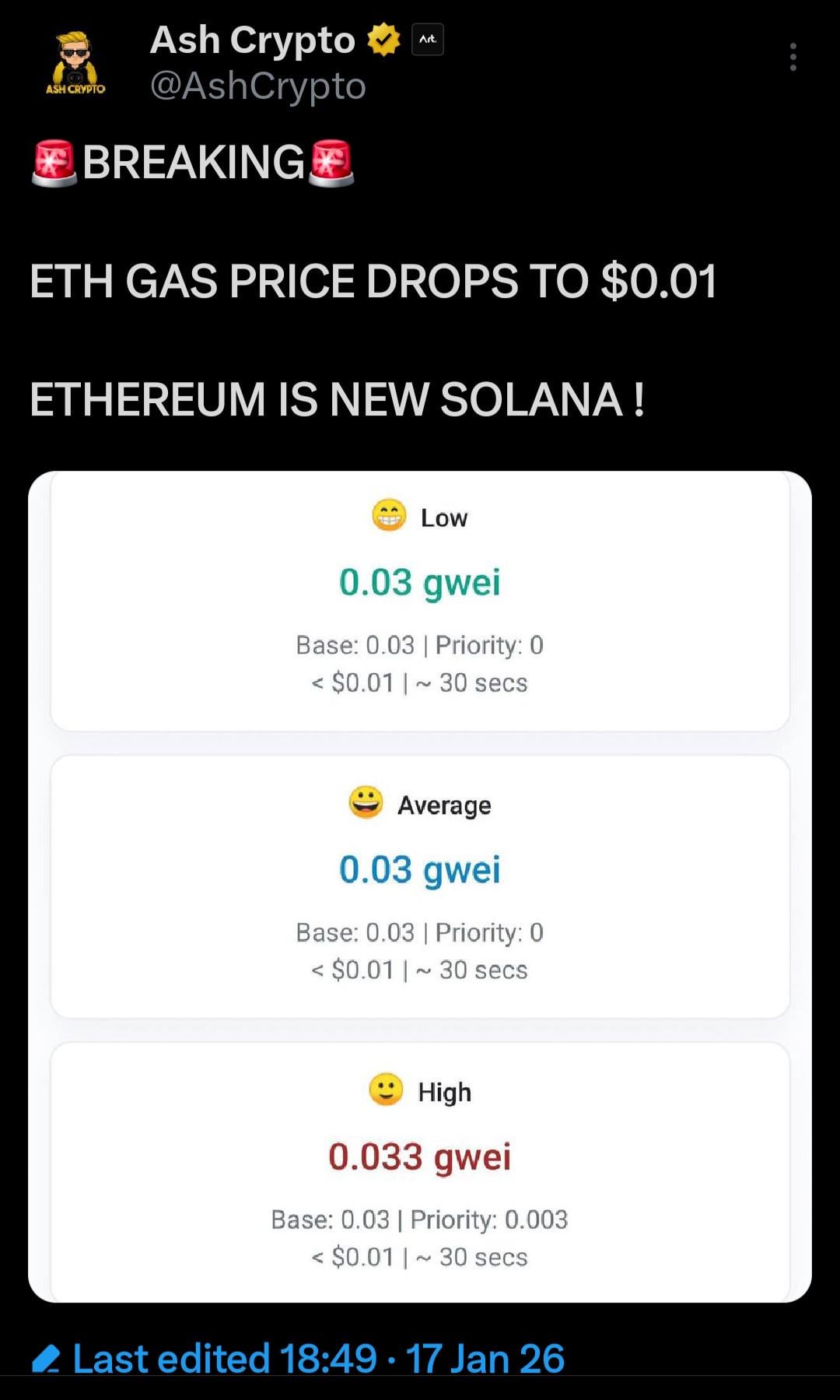 Ethereum is the new SOL except it you know actually works and is scalable and decentralized.