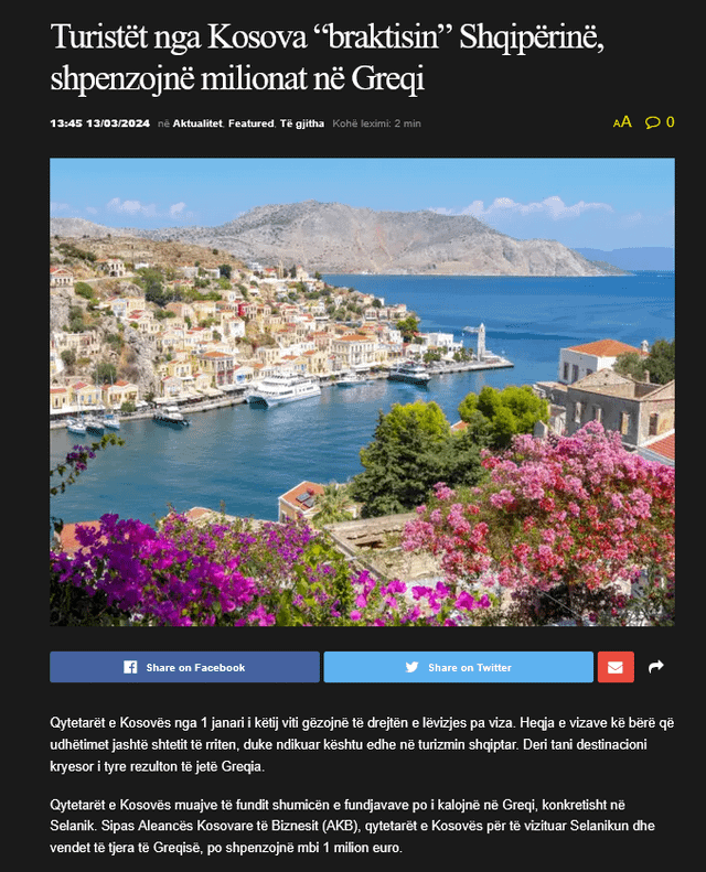 Wie ist Griechenland zum Hauptreiseziel der Kosovaren geworden, wenn die Griechen Tausende Albaner getötet haben und ihre Soldaten mit der Flagge von KOSOVO JE SERBIA und mit der Flagge von VORIO EPIR aufmarschieren, das heißt, sie wollen Südalbanien erobern? Nachdem im Kosovo der patriotische Nerv erloschen war, schien es, als sei eine große Schande vor dem Abzug Griechenlands entstanden.