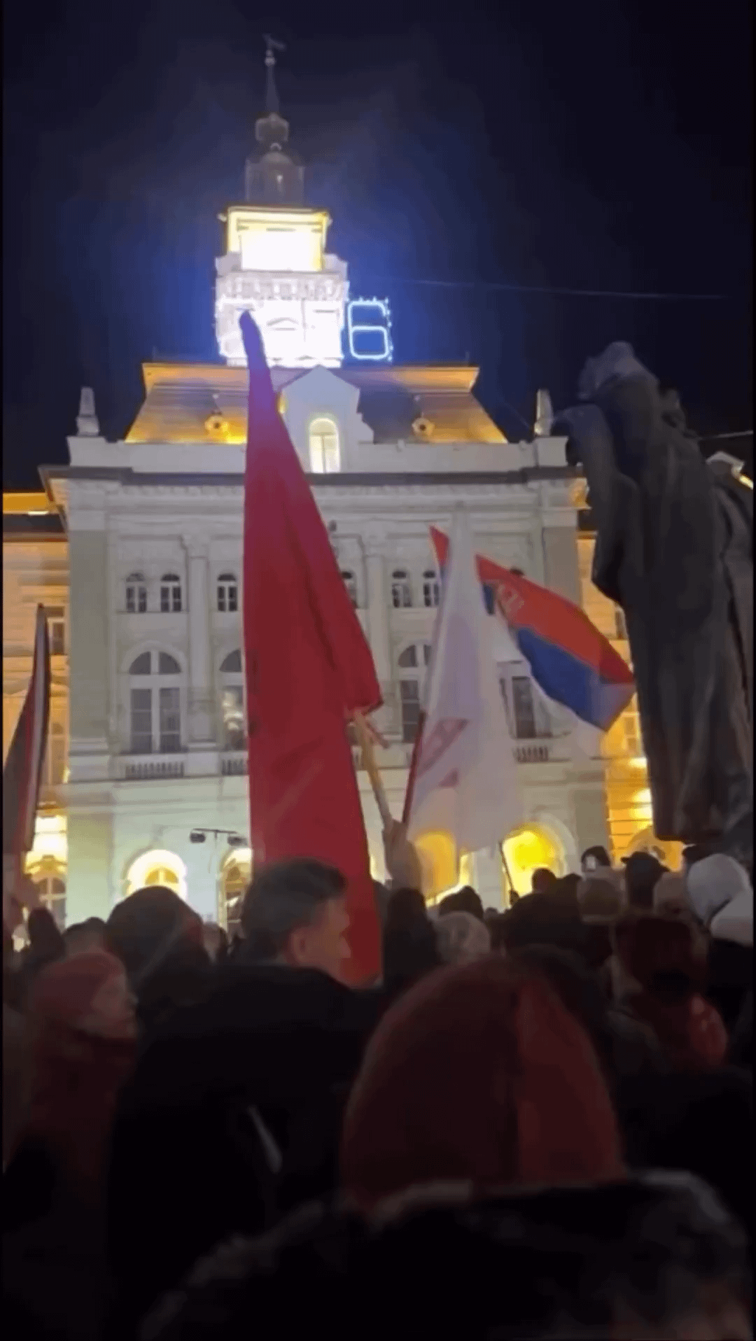 To explain the situation: this guy with the flag is a known “bot” of Aleksandar Vučić’s regime. He’s done this before where he’d bring the EU flag instead to Anti-Vucic protests.