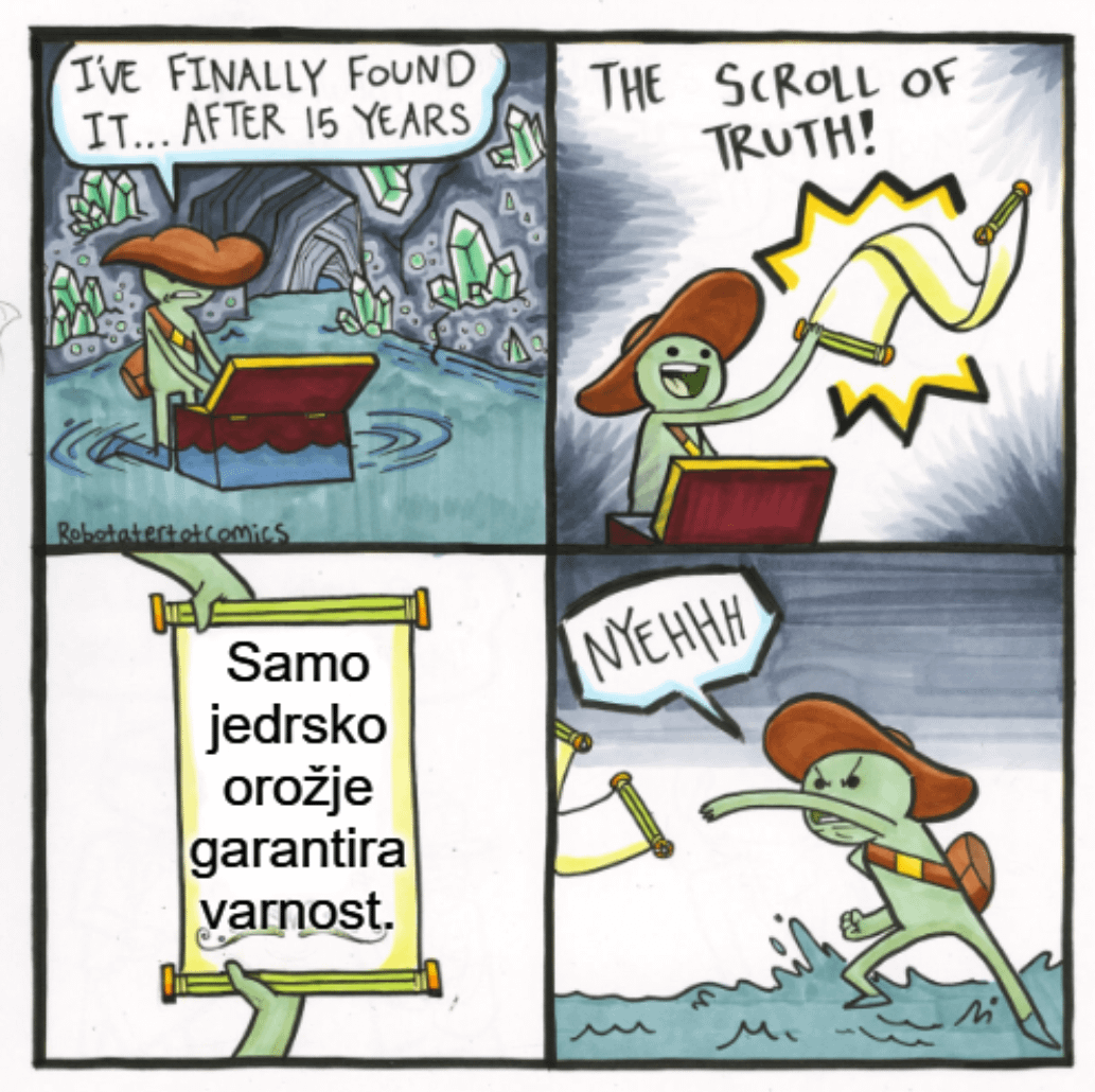 Js sam upam da bo evropa razsiral svoj jedrski arsenal v bliznji prihodnosti , ker na americane se ne da vec racunat , sicer francija pa valika britanija jih mata skupej nekje cez 500 od tega jih je 400pripravljenih na uporabo , kar je sicer dost za zradirat rusijo z oblicja zemlje ce je potreba , sam se zmeri bi blo pa fajn da bi jedrsko orozje doble tut druge drzave , sploh recimo poljska, finska pa baltske drzave, da se ne rabjo zanasat na francijo v primeru ruskega napada .