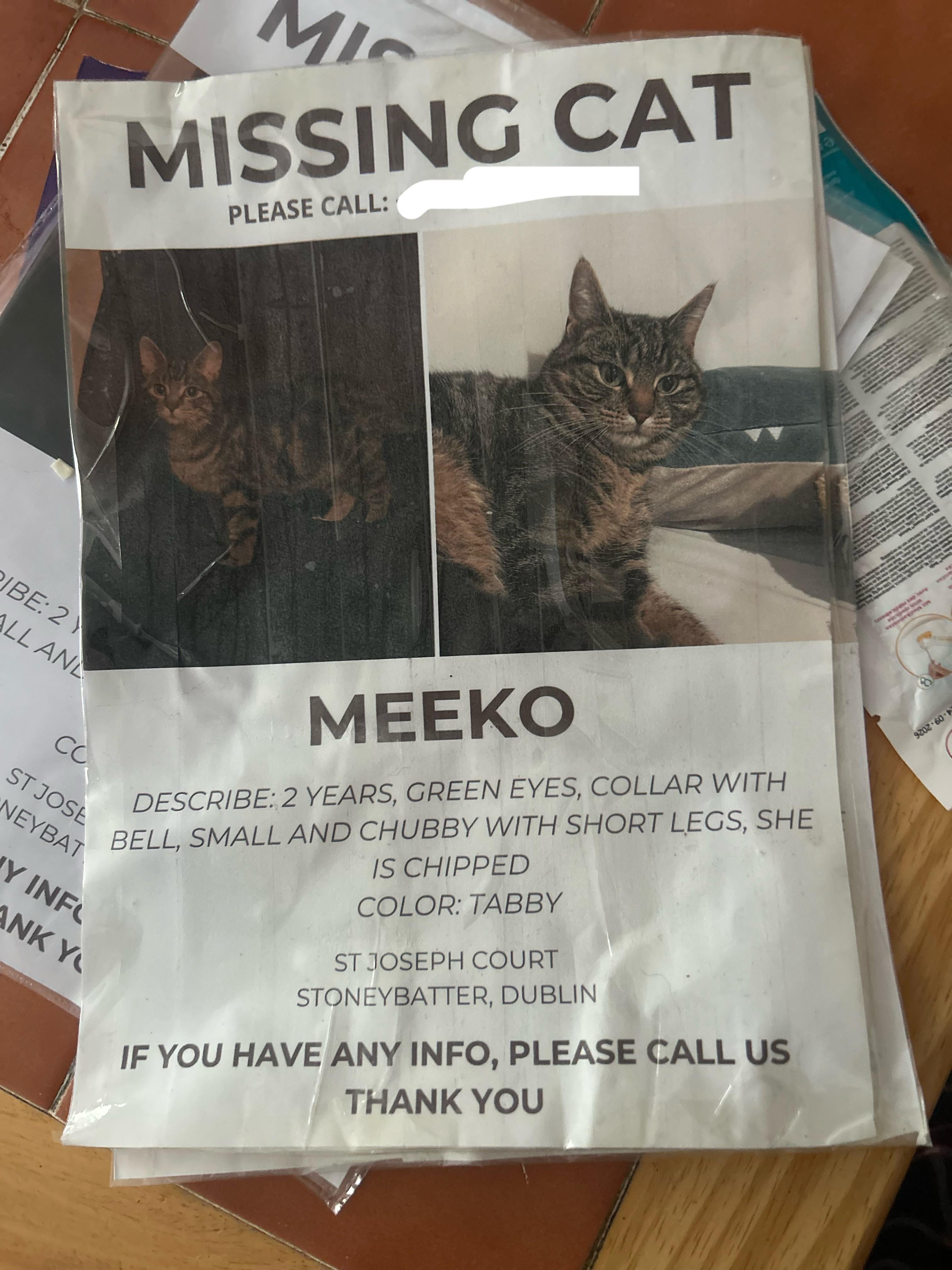 There’s a colony of street cats near Mac’s warehouse in Islandbridge.. laneway into Bellevue is the hub..a lot of people over the years search to see if their missing cats have joined that street gang.. might be worth looking 👀 if your sweet cat doesn’t show up.. these cats are fed by locals etc
