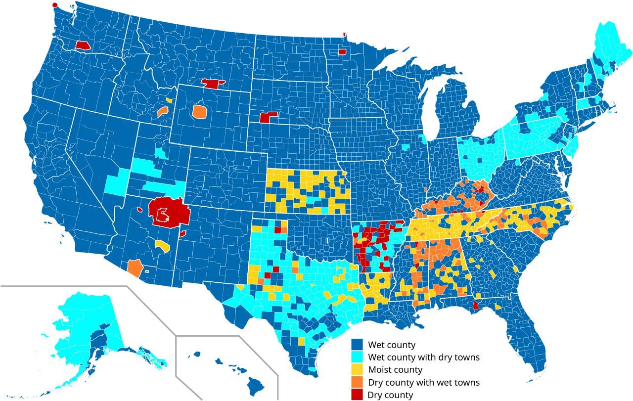 Manchmal ist es in diesen Landkreisen auch illegal, Alkohol zu besitzen.