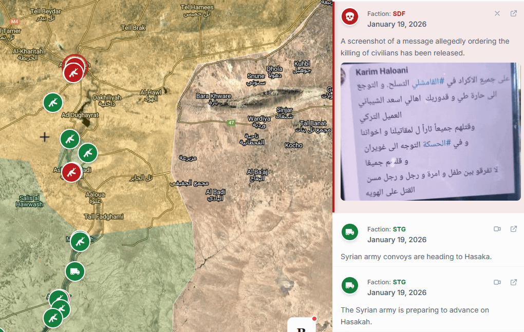 **#Kamışlı**’daki tüm Kürtler silahlanmalı. Tayy ve Kadurbek mahallelerine, Türk ajanı Esad eş-Şeybani’nin ailesine/halkına gidilmeli; savaşçılarımızın ve kardeşlerimizin intikamı için hepsi öldürülmeli. **#Haseke**’de ise Guveyran’a gidilmeli ve hepsi öldürülmeli. Çocuk, kadın, erkek ve yaşlı arasında ayrım yapmayın. Kimliğe göre öldürme (Etnik/kimlik bazlı infaz).