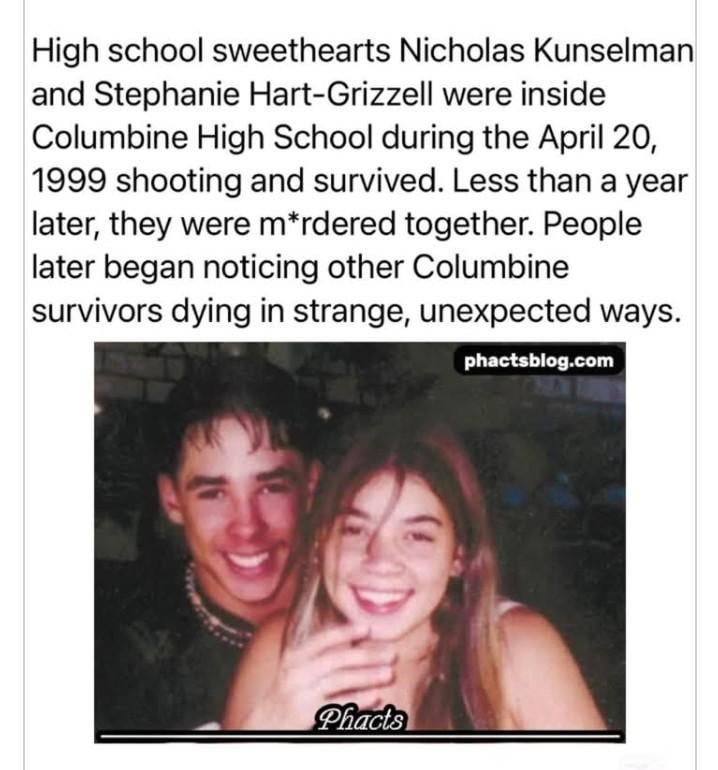 Yeah. It’s true. There is a shit ton about Columbine that we well never know the truth about, but something was definitely going on. So many strange things going on with that case. Into possible monarch programming with Eric, into it being one of the original modern “Manchurian candidate” type of test scenarios. Obviously all just theories but it goes deep and the details hint at something much stranger going on than just two angry teenagers deciding to blast up the school.