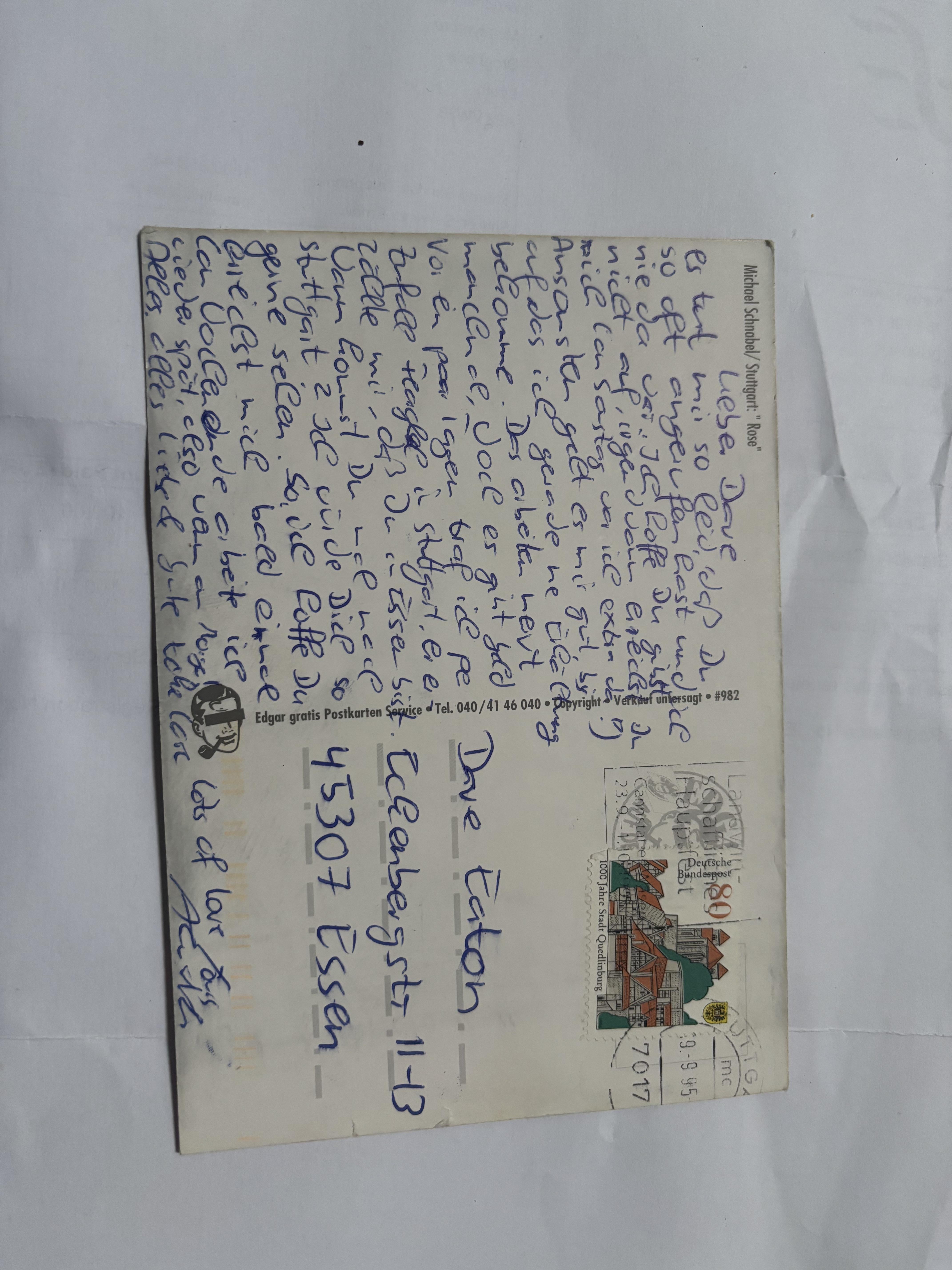 Ich habe diese Postkarte zusammen mit einem Foto in einem alten Buch gefunden. Ich möchte den Absender herausfinden. Kann mir das jemand übersetzen? https://i.redd.it/vgtxj71dc8eg1.jpeg Von hdtfggrxvfdcgftrfddd
