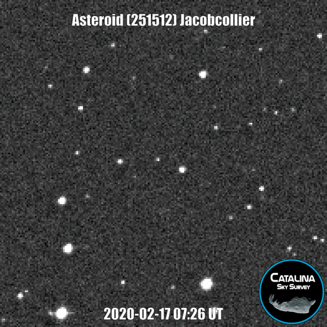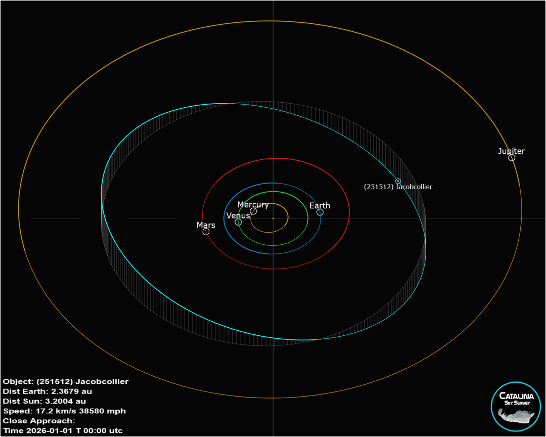 (251512) Jacobcollier hat einen Durchmesser von etwa 5 km. Es umkreist die Sonne zwischen Mars und Jupiter, am äußersten Rand des „Hauptgürtels“, der Region des Sonnensystems, in der sich die meisten Asteroiden befinden.
