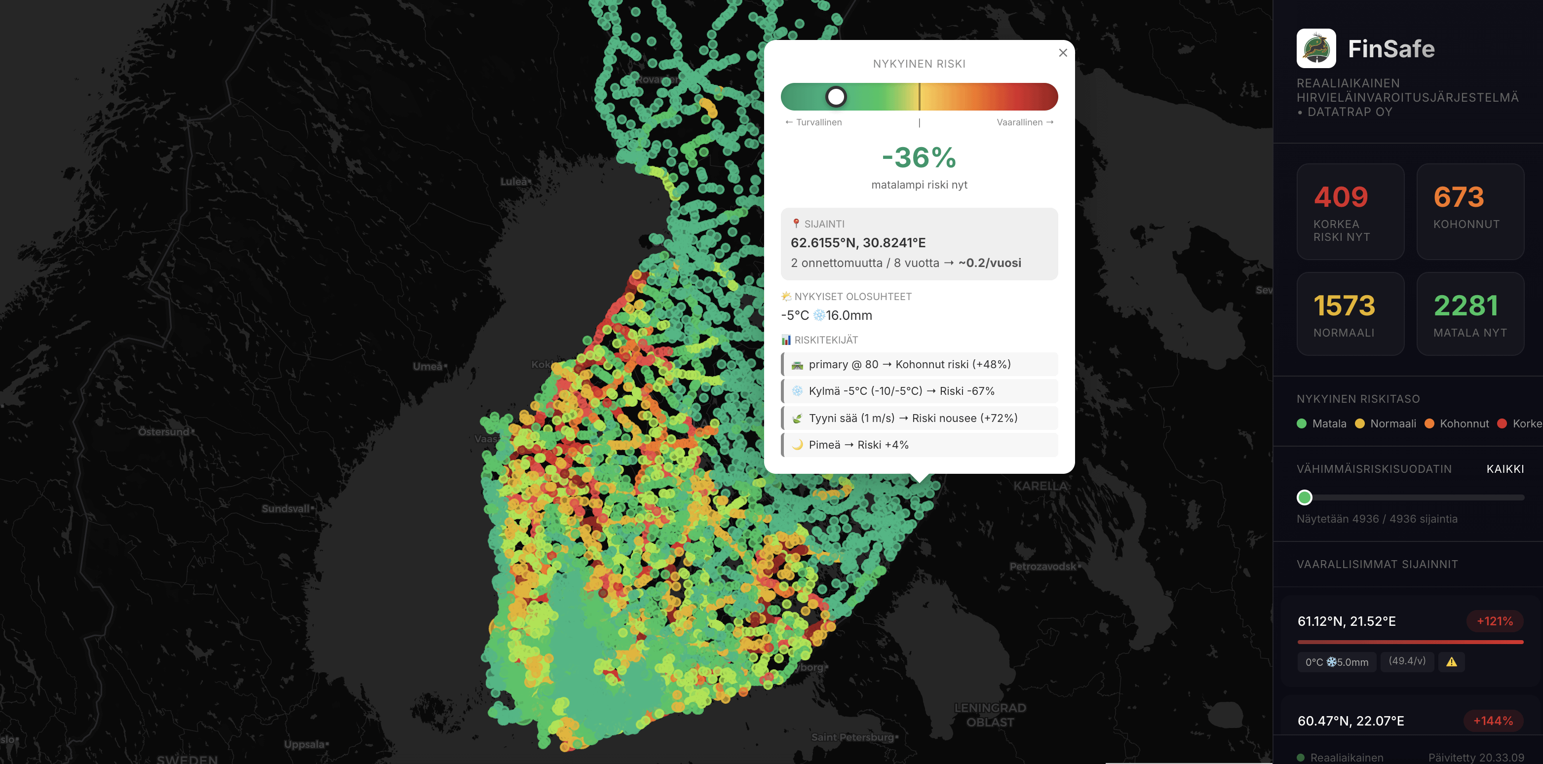 Grundsätzlich versuche ich zu visualisieren, wann und wo das Risiko von Wildtierkollisionen kurzzeitig ansteigt, und nicht nur, wo in der Vergangenheit Unfälle passiert sind.