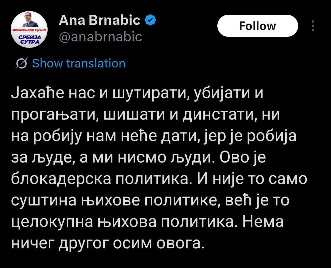 Nikad vise istine nije bilo napisano sa tog accounta na X platformi.