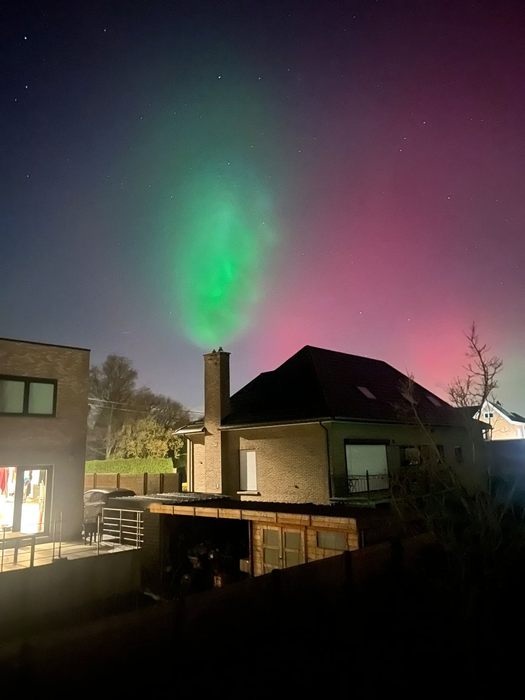 if you are seeing this at night, go outside, look around! try looking north and up, if you don’t see anyhting right away give it 5 minutes to let your eyes adjust. Try looking with your phone camera to see if you can find it that way. Crazy light show right now, please enjoy our belgian aurora!