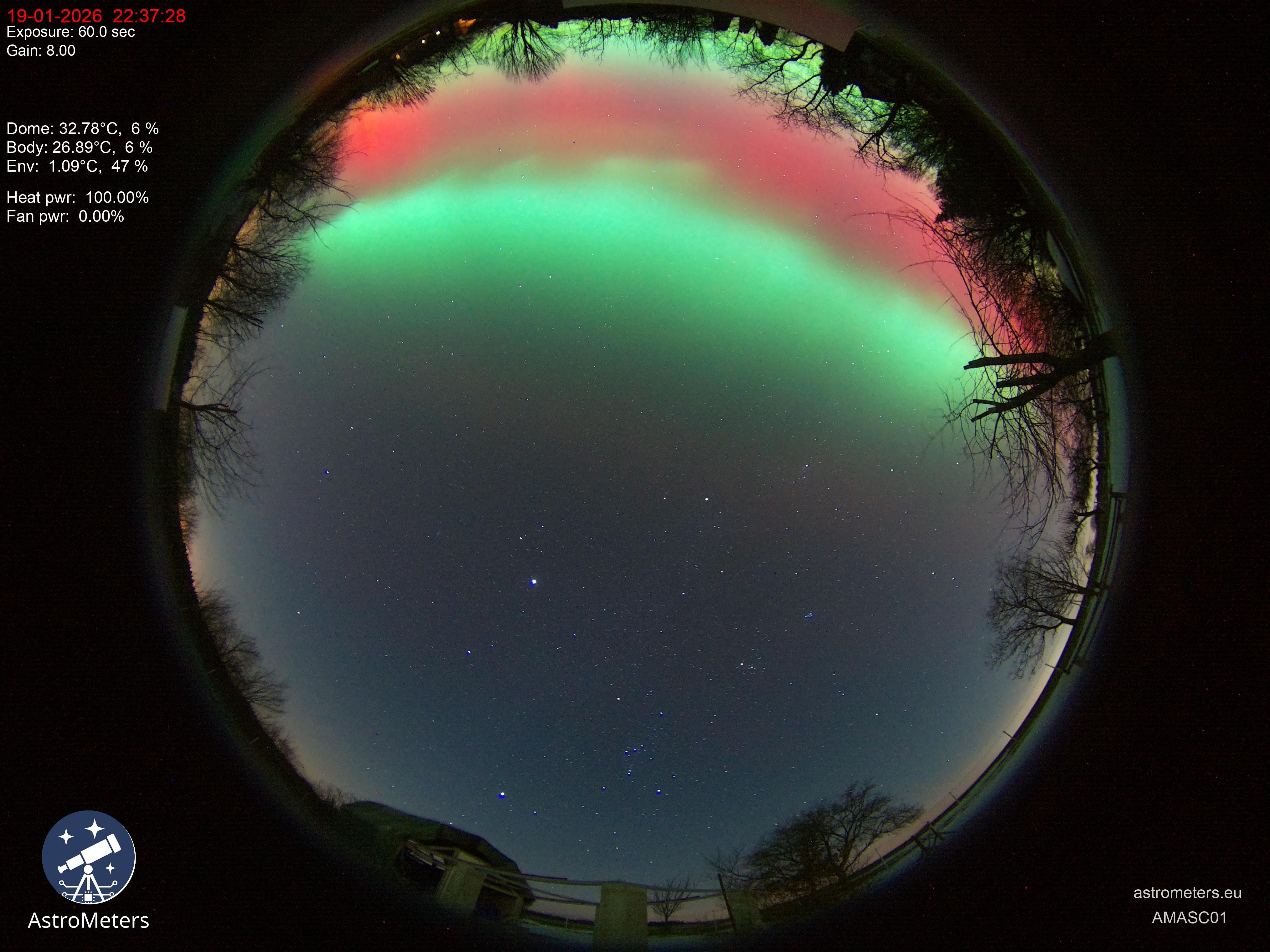 Das heutige Polarlicht mit der All-Sky-Kamera AMASC01 aus Pardubice