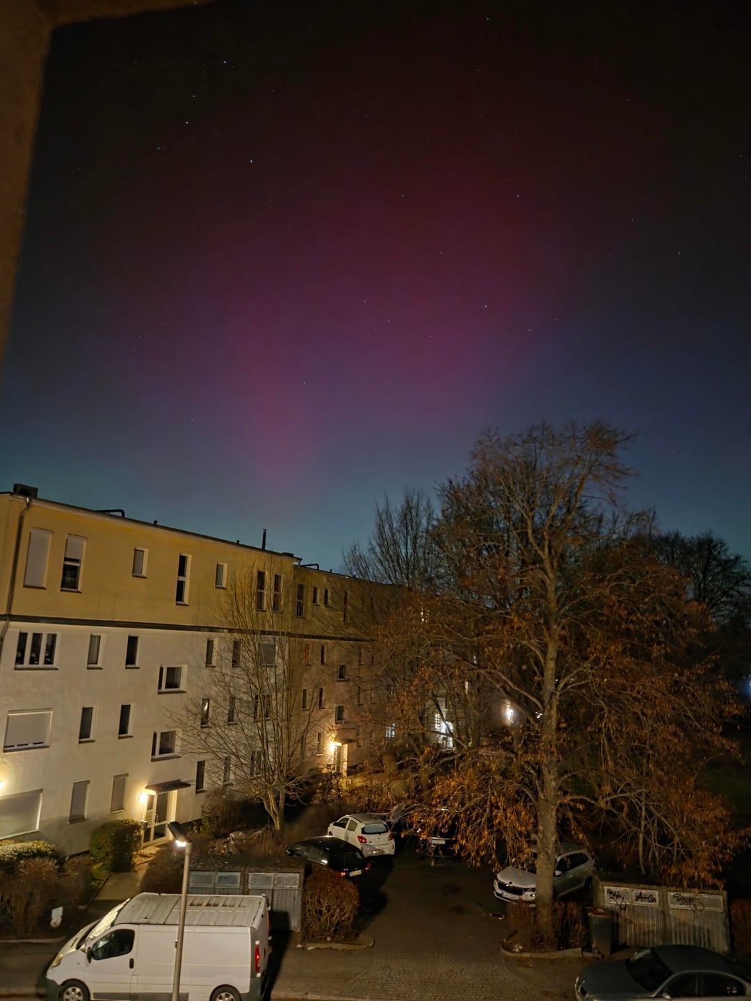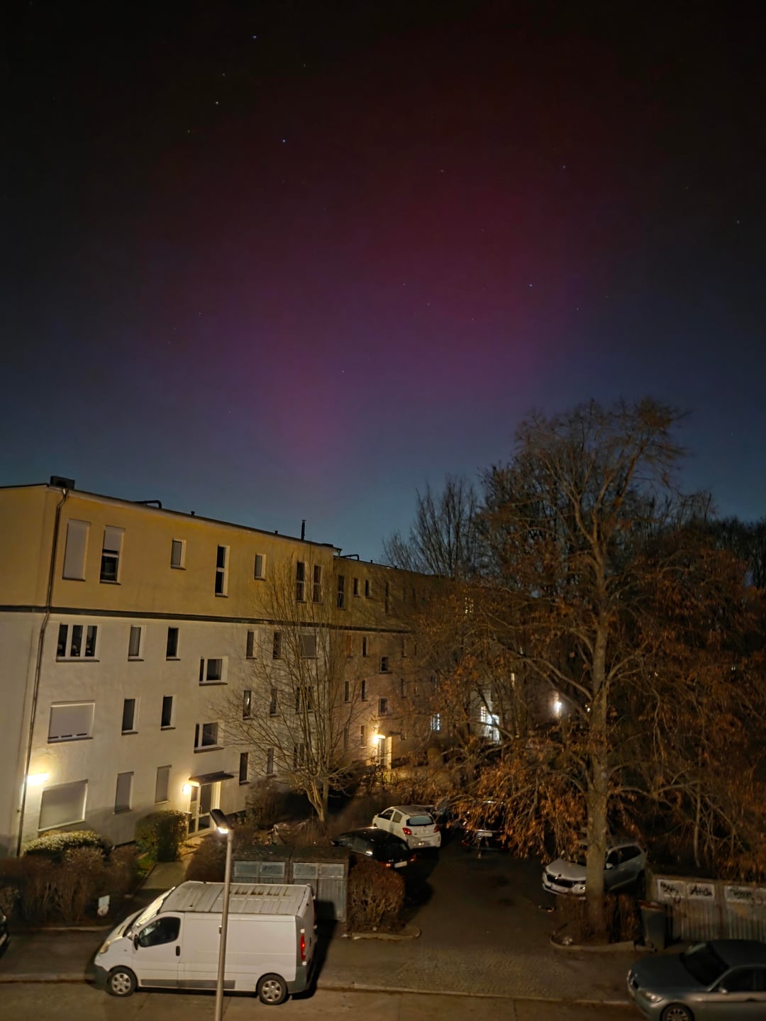 Ich habe das in Berlin gesehen, obwohl es auch andere Gegenden gab, in denen die Leute grüne und rosa Polarlichter sahen, aber das war von meinem Fenster im Süden Berlins aus. Sieht das aus wie ein Polarlicht oder wurde ich von ein paar Lichtern der Stadt getäuscht? Dies dauerte etwa 5-10 Minuten und etwa genauso lange wie andere Sichtungen
