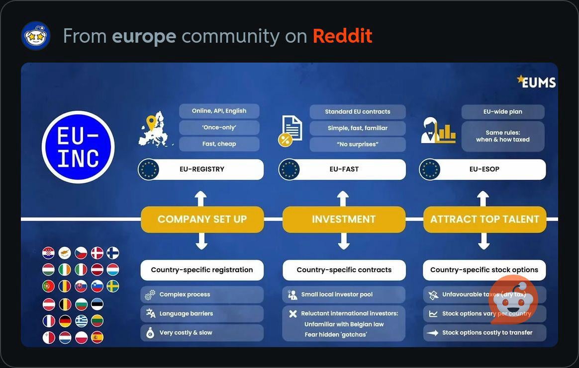 How does it reconcile social contributions in salary or paying taxes or VAT? Or differing workers rights? In Germany if you exceed a certain amount of workers you need a workers council. It is sort of a lot of meaningless buzz words. In Germany when you invest in a business every single line of legal text must be first read out. It can take up to 6 hours just to listen to that.