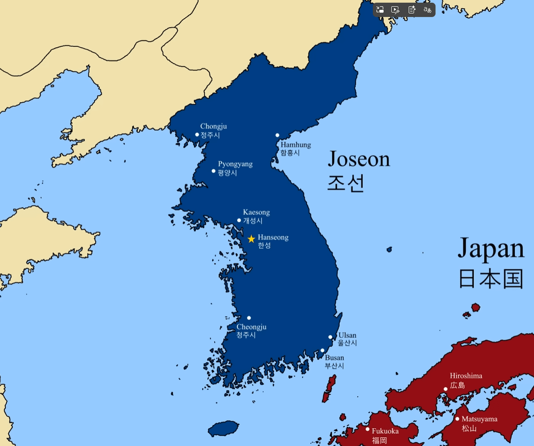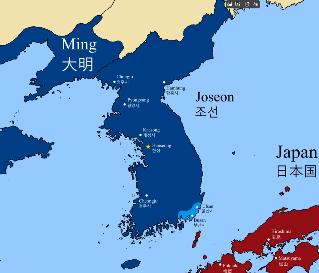 **Juni 1592:**Japan hat mehrere wichtige koreanische Städte erobert, und der koreanische König ist offiziell nach China geflohen, hat die Ming-Dynastie, seinen Oberstaat, um Hilfe gebeten und um militärische Unterstützung gebeten.