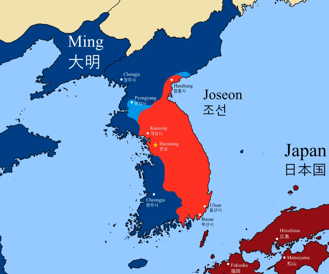 Bis zum Ende des 16. Jahrhunderts hatte Toyotomi Hideyoshi Japan geeint; seine Ambitionen wurden immer größer und Er versuchte, die koreanische Halbinsel zu erobern und nutzte sie sogar als Sprungbrett für die Invasion und Eroberung des China der Ming-Dynastie.