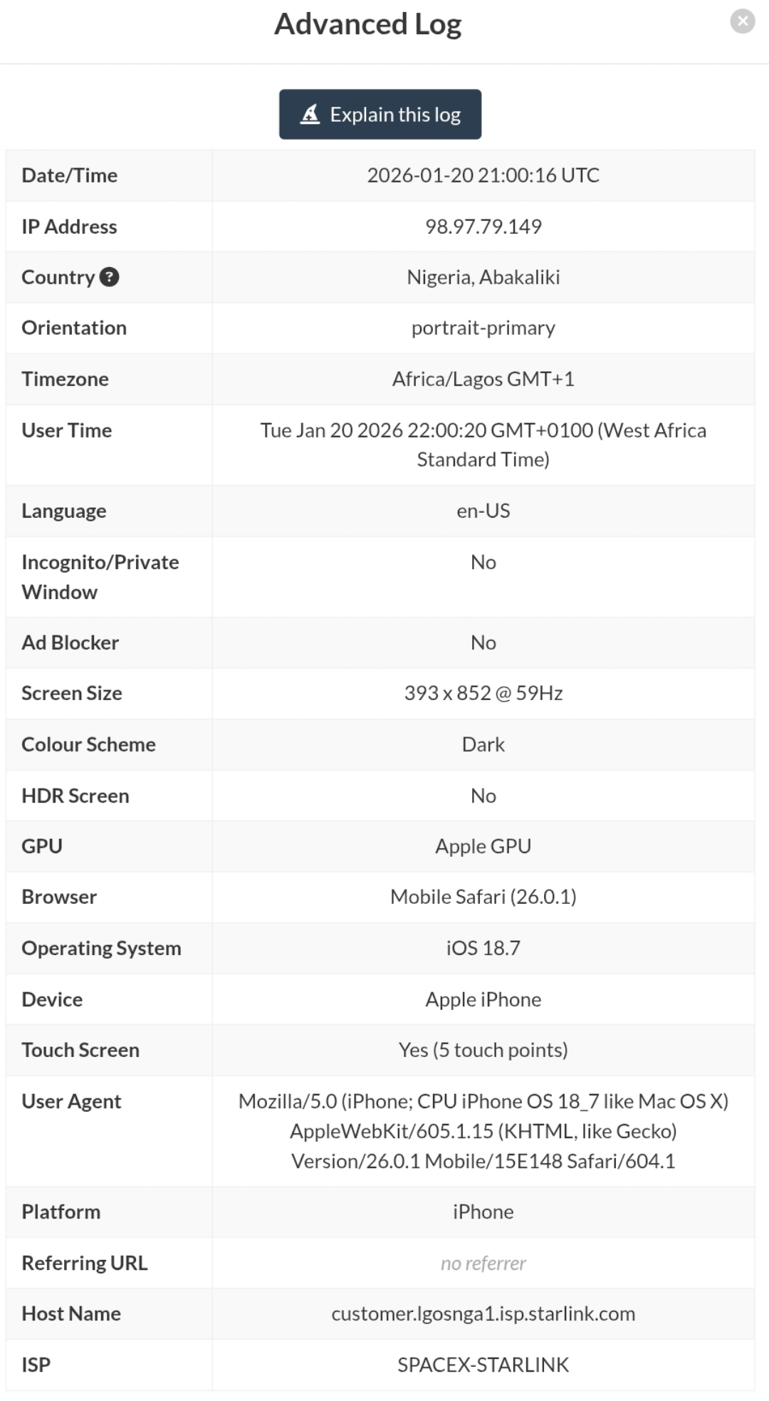 A po co od razu wysyłać komplet danych? Lepiej subtelnie wplatać w rozmowę. Zapytać jak Safari po updacie do v26 śmiga. Obczaj street view okolicy i poszukaj inspiracji. Niech gość starannie się ogląda za każdym razem jak będzie wchodził na stację benzynową czy coś.