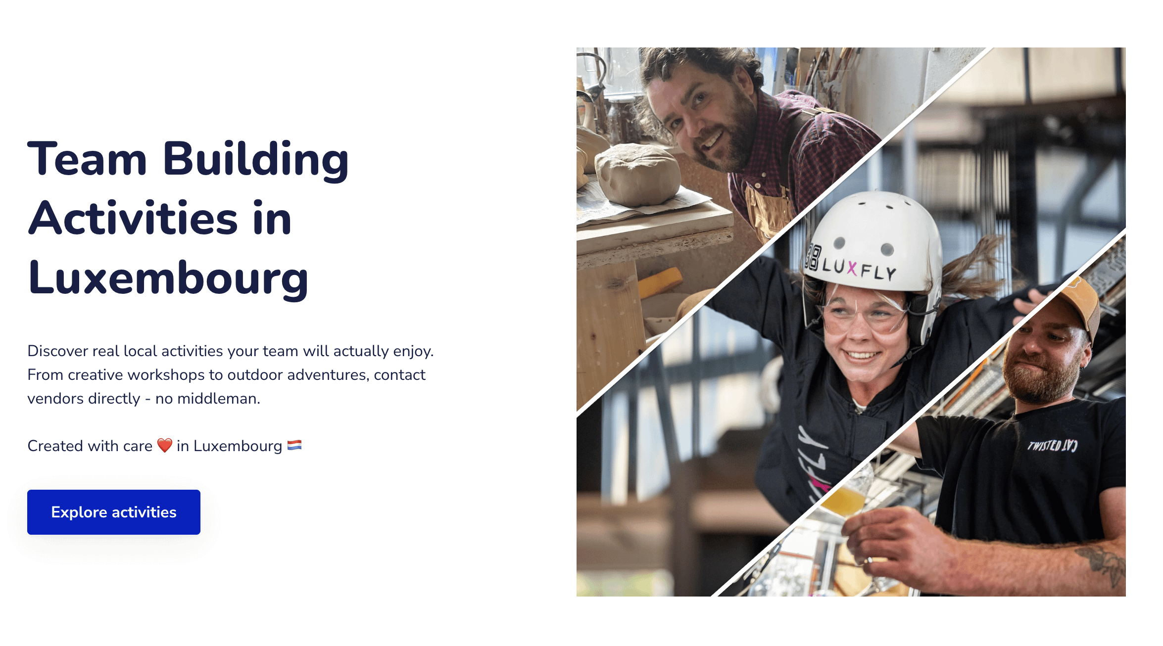 Letztes Jahr habe ich angekündigt, dass ich eine Website gestartet habe, um Unternehmen in Luxemburg dabei zu helfen, Ideen für die Organisation von Teambuilding-Events zu finden und Anbieter direkt zu kontaktieren (Originalbeitrag).