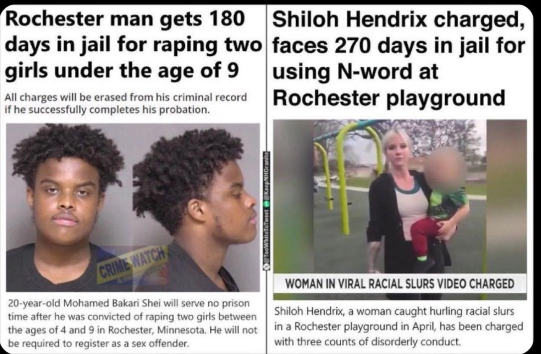 Is that first article true? If so, I’d say drop whatever „comparison“ this is supposed to illustrate, and focus on heavier charges for abhorrent things like that. Regardless of race of the convict.