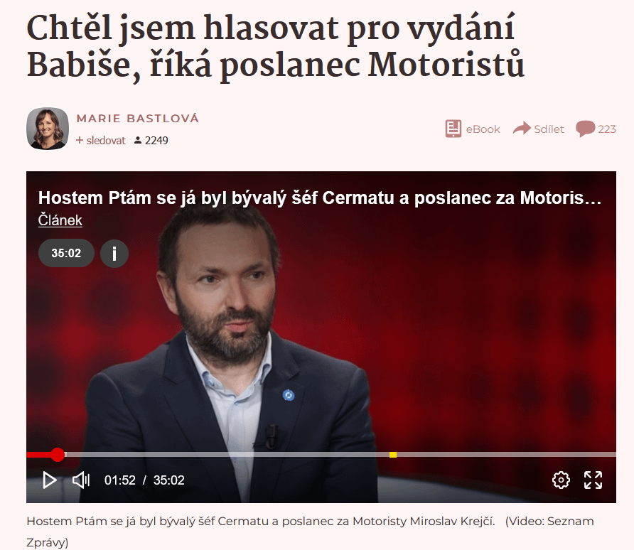 „Ich lebte in der Tatsache, dass es fair war, sie strafrechtlich zu verfolgen. 40 Prozent der Menschen in der Tschechischen Republik stimmten mit JA für Andrej Babiš, und diese 40 Prozent der Menschen wussten, womit Andrej Babiš es zu tun hatte. Und es würde der Tschechischen Republik auch im Ausland und in den internationalen Beziehungen immens schaden, wenn sie einen strafrechtlich verfolgten Ministerpräsidenten hätte“, sagte Krejčí. „Ich spreche nicht darüber, was fair und moralisch richtig ist, aber aus Sicht der Tschechischen Republik ist es richtig, dass wir keine strafrechtliche Verfolgung des Premierministers haben. Deshalb werde ich dafür stimmen, dass er nicht ausgeliefert wird.“