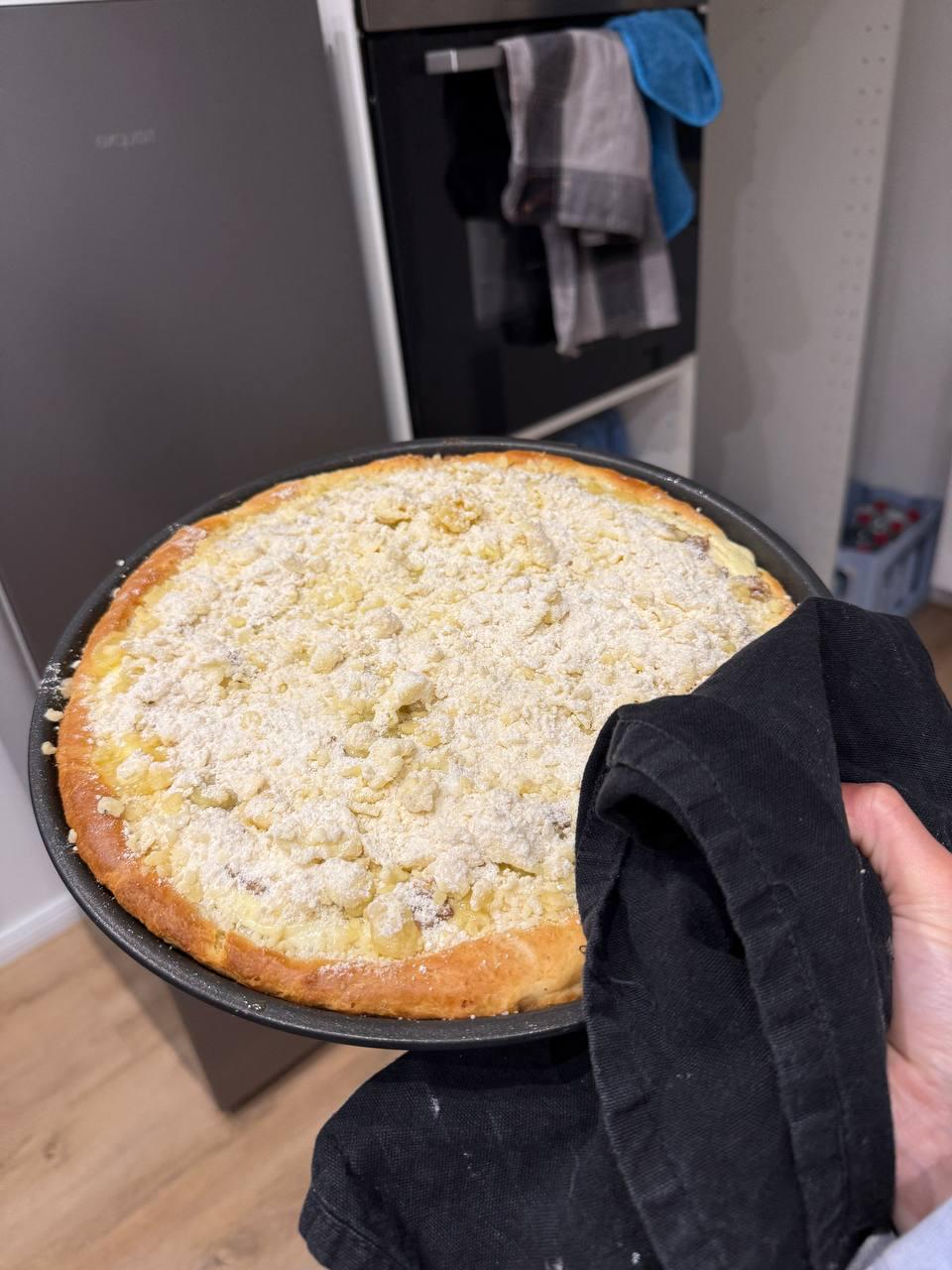 Den Kuchen im vorgeheizten Ofen bei 180°C Ober-/Unterhitze ca. 40-45 Minuten backen, bis die Streusel goldbraun sind. Vor dem Servieren abkühlen lassen. Guten Appetit!