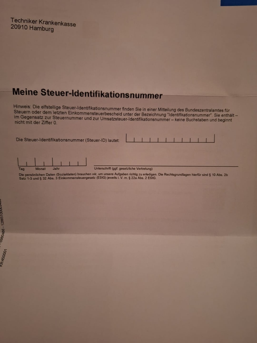Außerdem: Woher bekomme ich diese Steueridentifikationsnummer, nach der sie gefragt haben, weil ich keinen Brief erhalten habe, in dem sie enthalten ist, und ich bin auch nicht sicher, was die anderen Nummern sind, die sie erwähnt haben? Ich habe nur einen Brief von mir erhalten "Versicherungsnummer". Wenn mir jemand kurz sagen kann, um welche Nummer es sich handelt und wo man sie bekommt, wäre ich sehr dankbar. Vielen Dank.