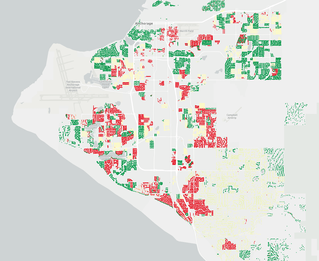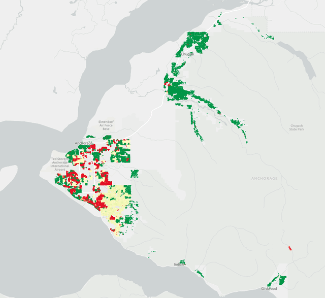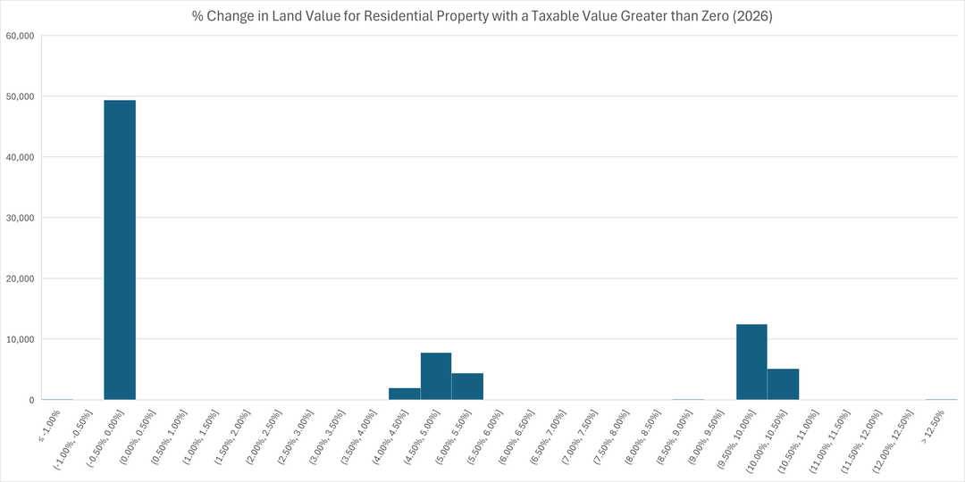 Ich habe mich mit den kürzlich veröffentlichten Immobilienbewertungsdaten für Anchorage, AK befasst und dabei etwas Interessantes entdeckt. Der geschätzte Wert des Grundstücks (ohne Verbesserungen) wurde auf eine Weise angepasst, die ich sehr interessant (und leicht willkürlich) finde.