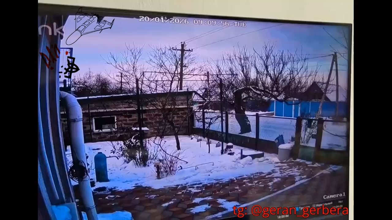Geran-2-Angriff auf ein Haus, gefilmt von einer Überwachungskamera. 20.01.2026