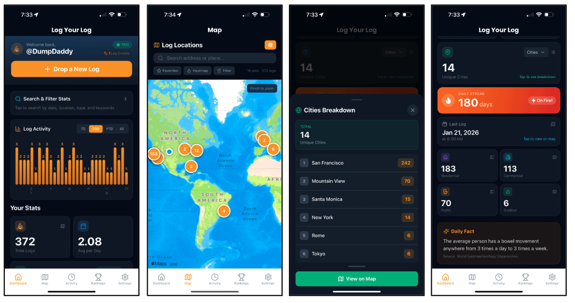 Einige finden diese Datenvisualisierung und die aufschlussreiche Mustererkennung möglicherweise äußerst nützlich. Andere denken vielleicht, ich habe enorm viel Zeit damit verschwendet, meine Verschwendung zu dokumentieren. Unabhängig davon habe ich mich immer gefragt, wie viel von der Welt ich erobert habe und jetzt kann ich es mir vorstellen LogDeinLog