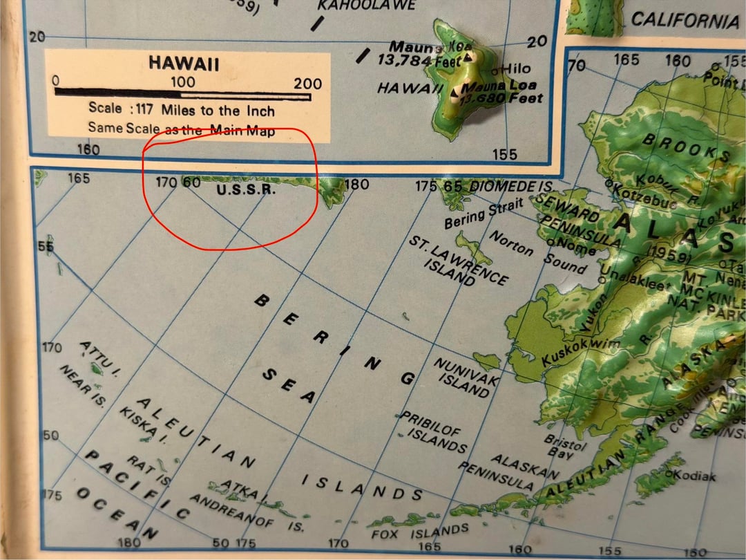 Einer meiner Favoriten. Habe es vor über 10 Jahren in einem Antiquitätengeschäft in Houston abgeholt. Mir ist heute gerade die „UdSSR“ aufgefallen … Irgendwelche anderen Informationen, die mir helfen würden, diese Karte altern zu lassen?