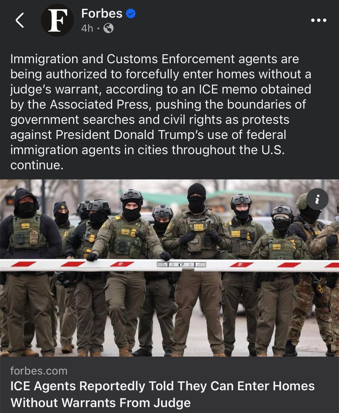 Edit because OP is too scared to quote the memo: Yes its a memo from may 12th 2025 saying that you can use an administrative warrant as a valid reason to enter a suspects home in specific cases where a judge has issused a final notice of removal.