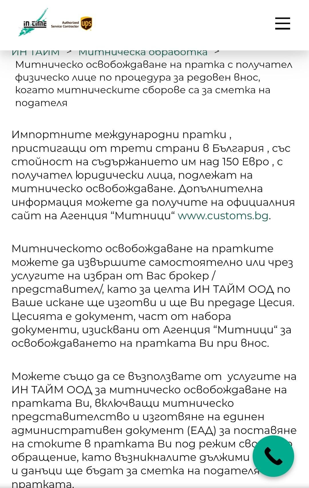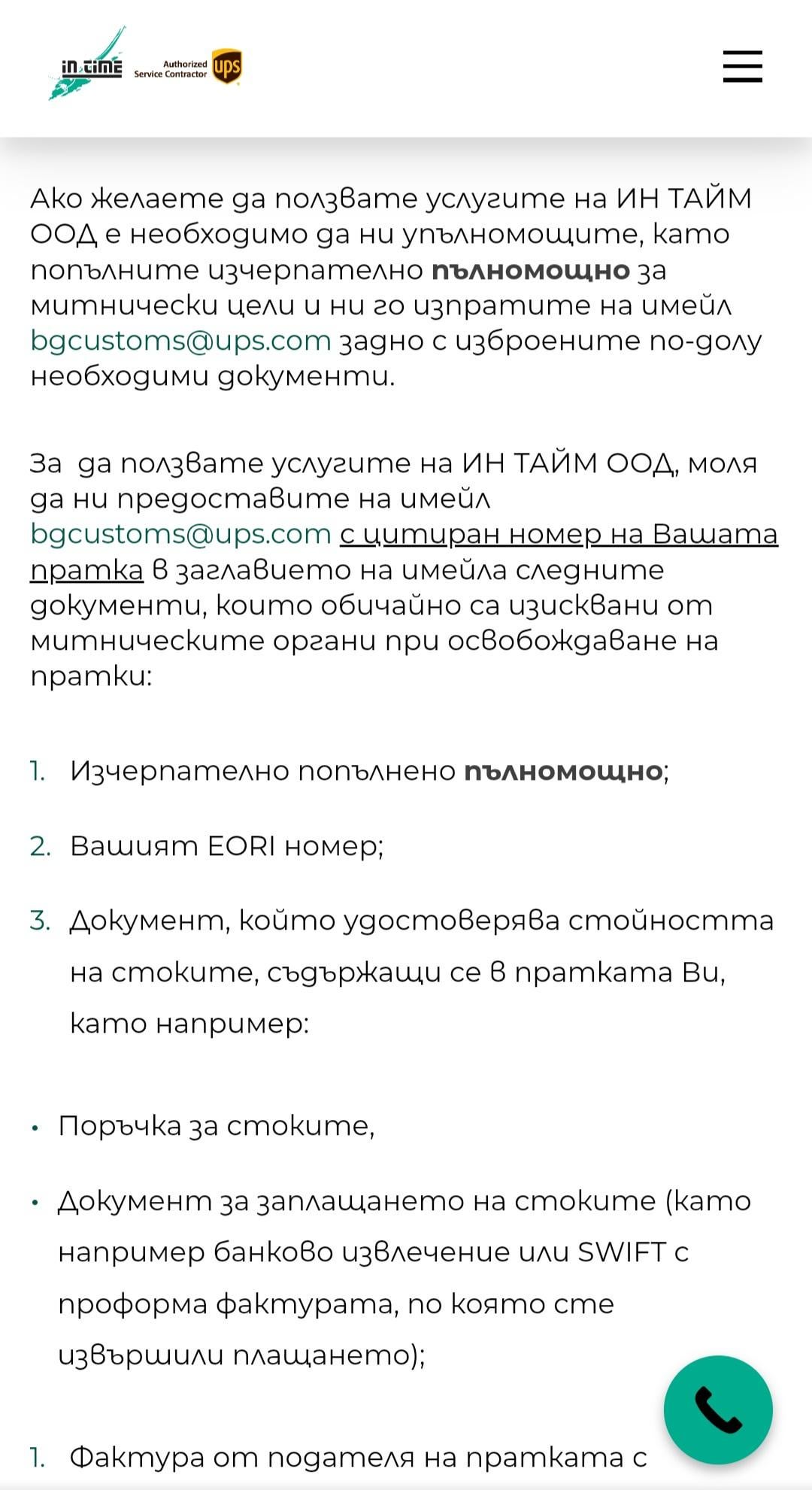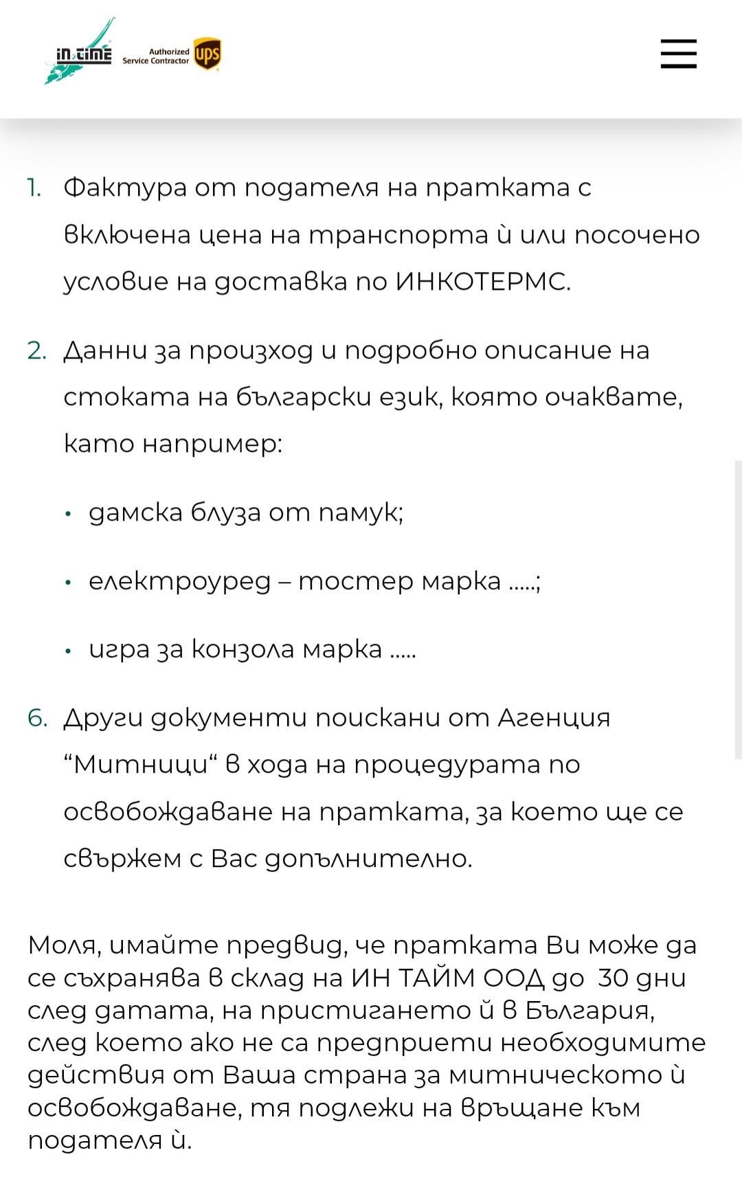 InTime е местния посредник на UPS офиса им е до кръговото на сградата на Нова бих ги посетил.